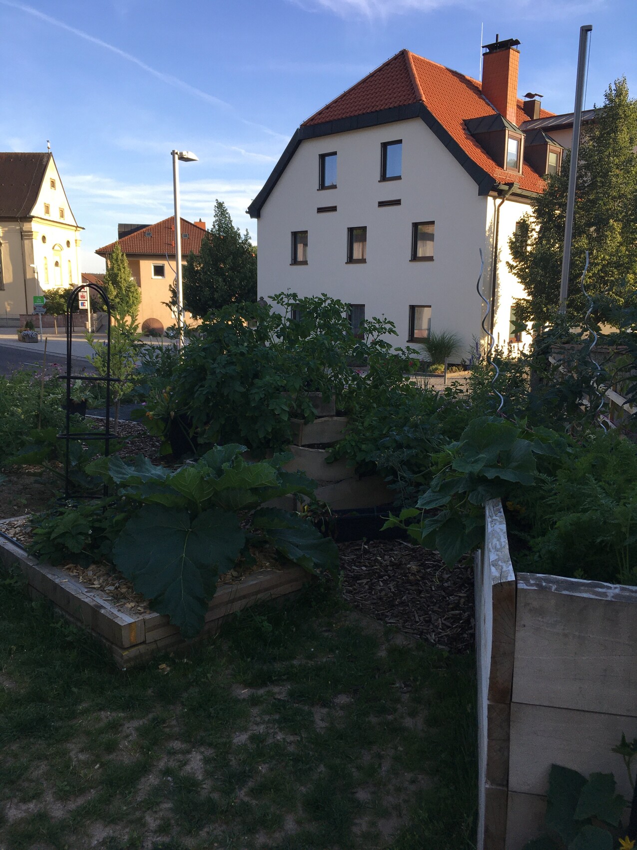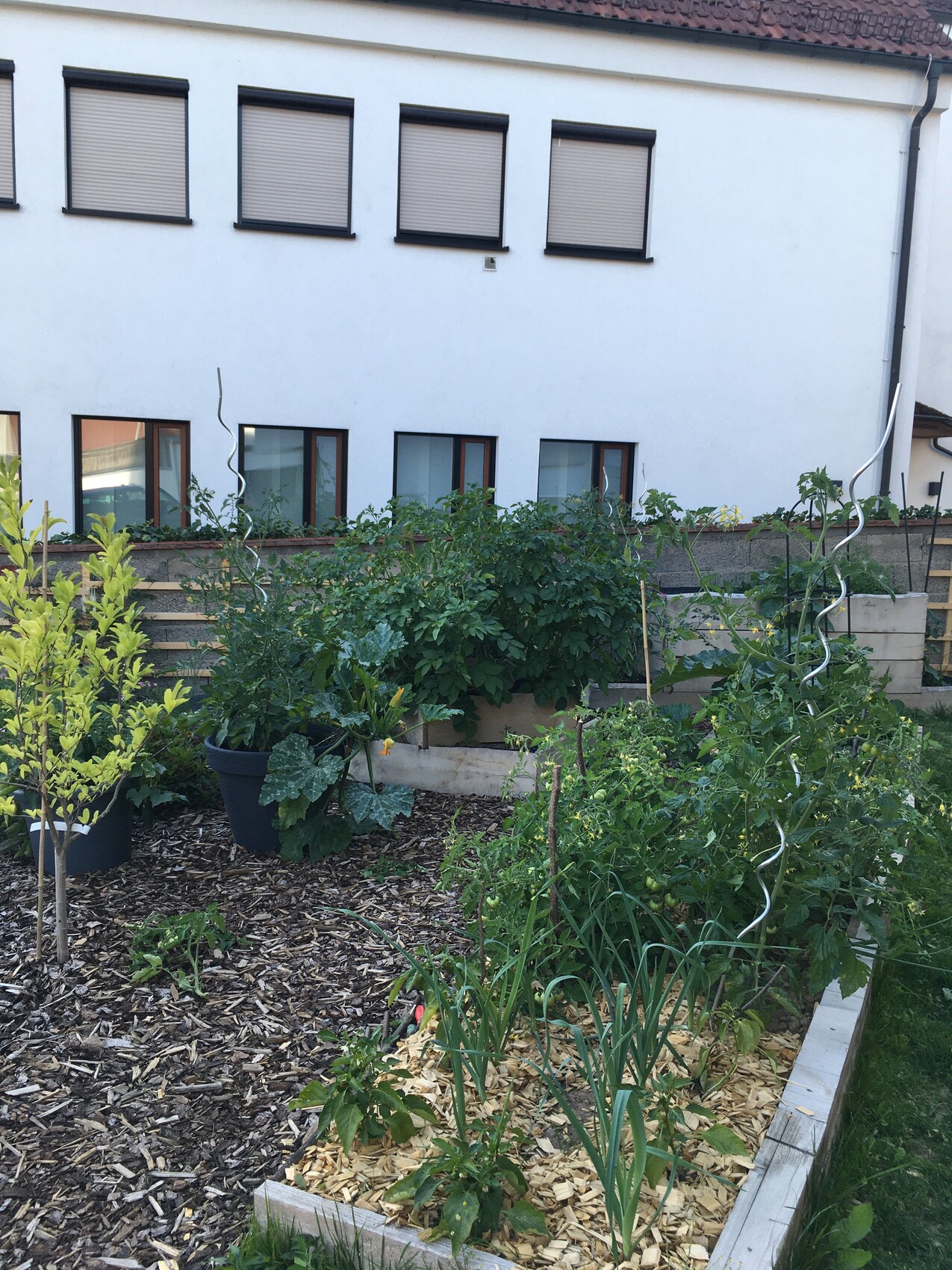Mal ein paar Bilder aus dem Garten. Mußte meine Buschtomaten hochbinden. Die sind unter der Last zu Bodendeckern geworden