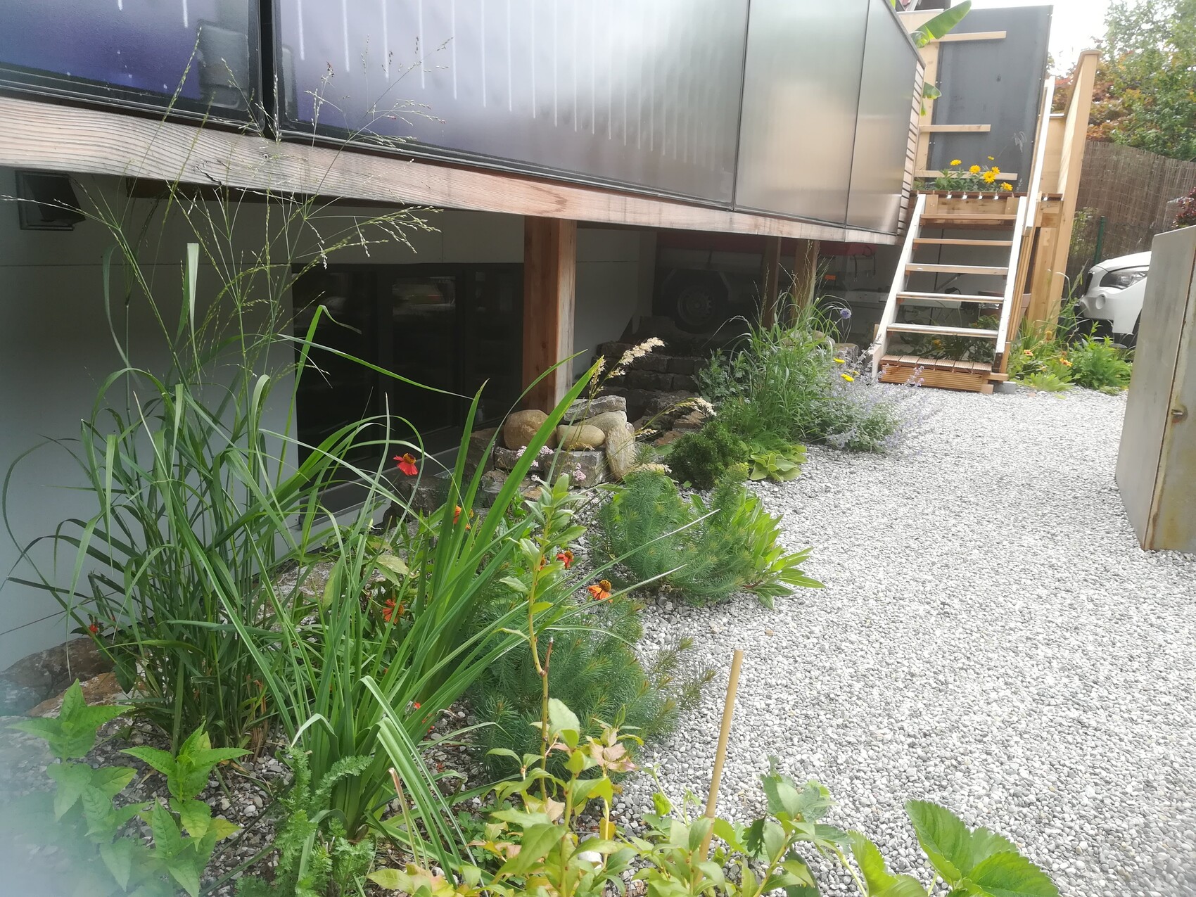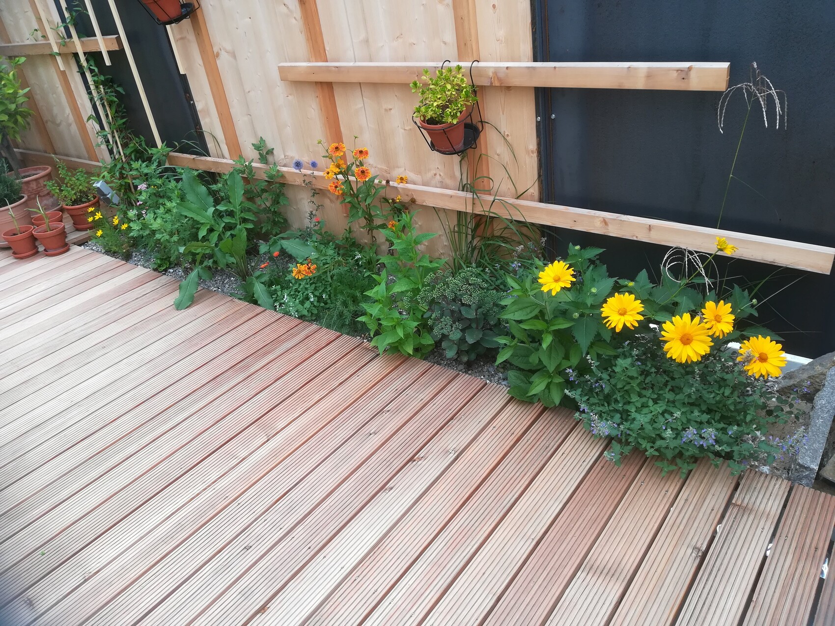 Die Staudenbeete, die mit der Staudenmischung "Feuer und Flamme" in einem extra Staudensubstrat gepflanzt wurden, wachsen auch fleißig und wir haben nur wenig Schwund zu beklagen:
