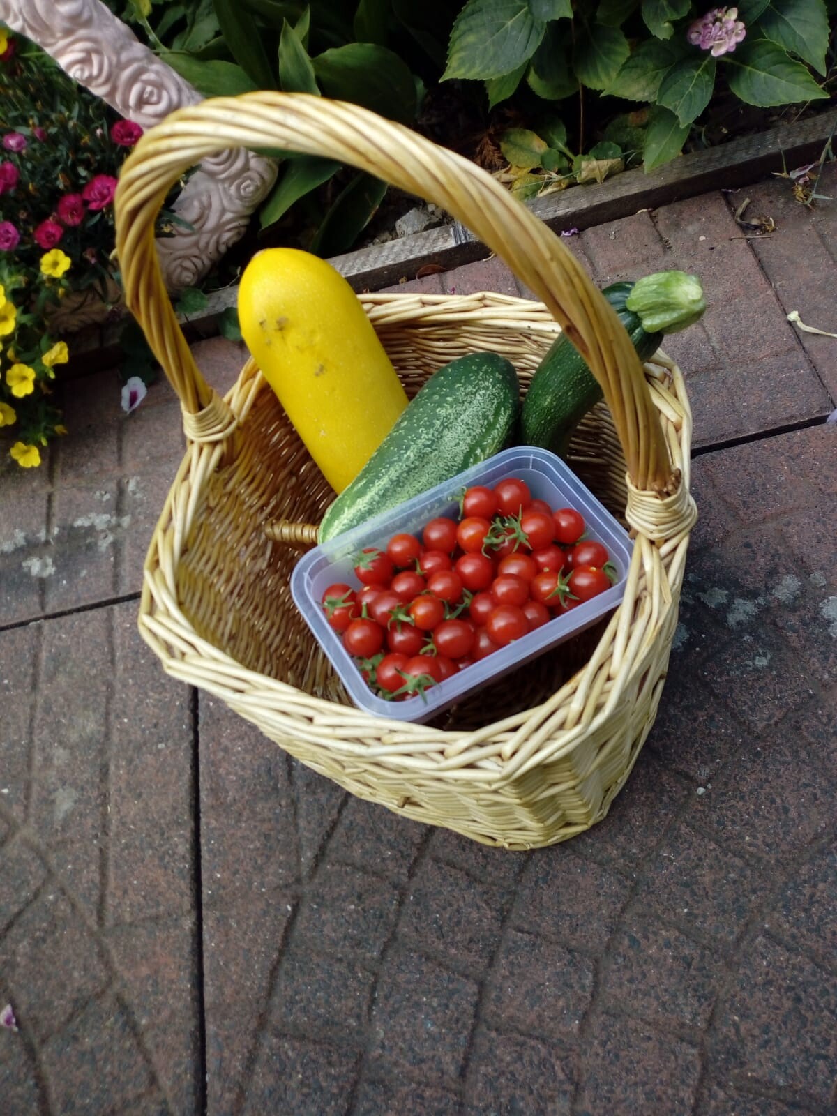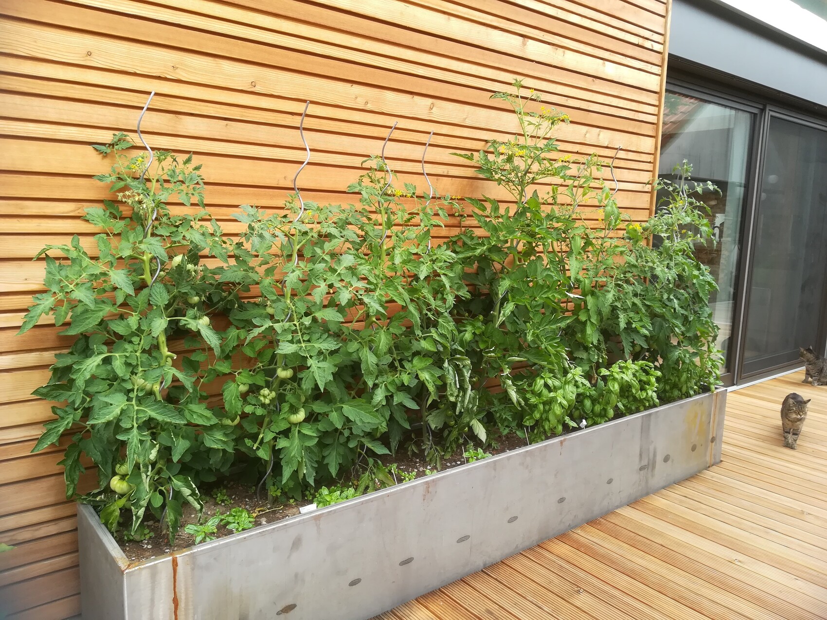 Und jetzt noch meine kleine Lieblingsecke, die Tomaten. Sind leider spät dran, weil die auch erst Anfang Juni eingepflanzt werden konnten.