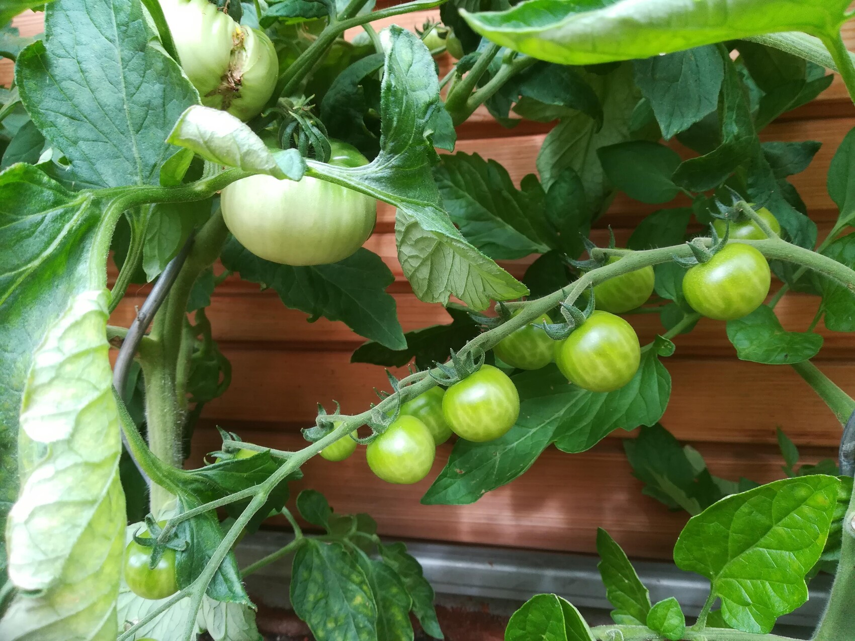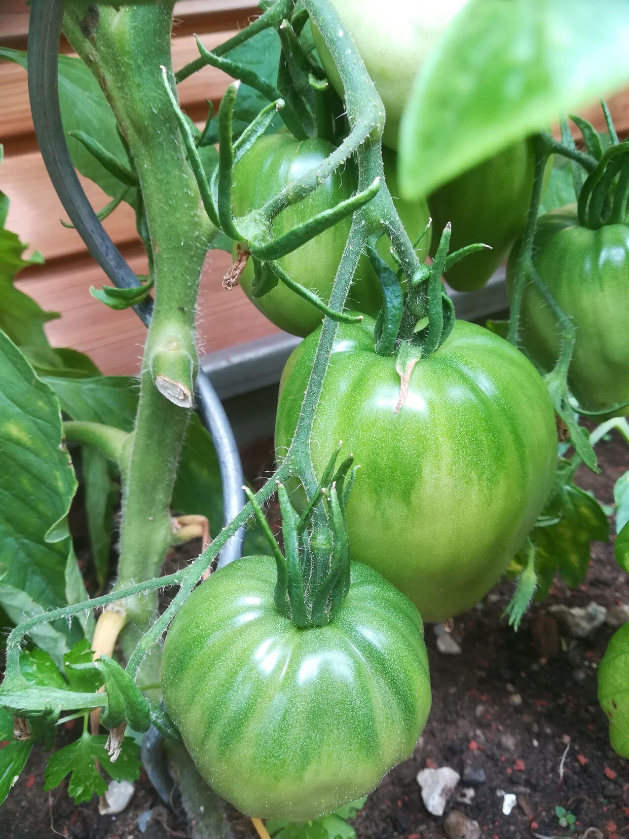 Fummelbrett!14.08.20 23:12Tomaten wachsen hier wie bekloppt. Nur die 6 Pflanzen, die ich ins gewächshaus gesetzt habe, sind eingegangen. Die im Freiland tragen fleißigst. Sehr gut gedeihen auch die verschiedenen Chilis - mein Favorit ist eine schwarze Sorte mit lila Blüten.