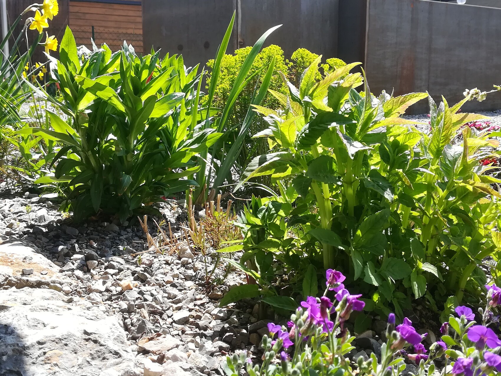 Auch im Schattenbereich unter unserem Balkon vor den Kellerfenstern grünt es kräftig: