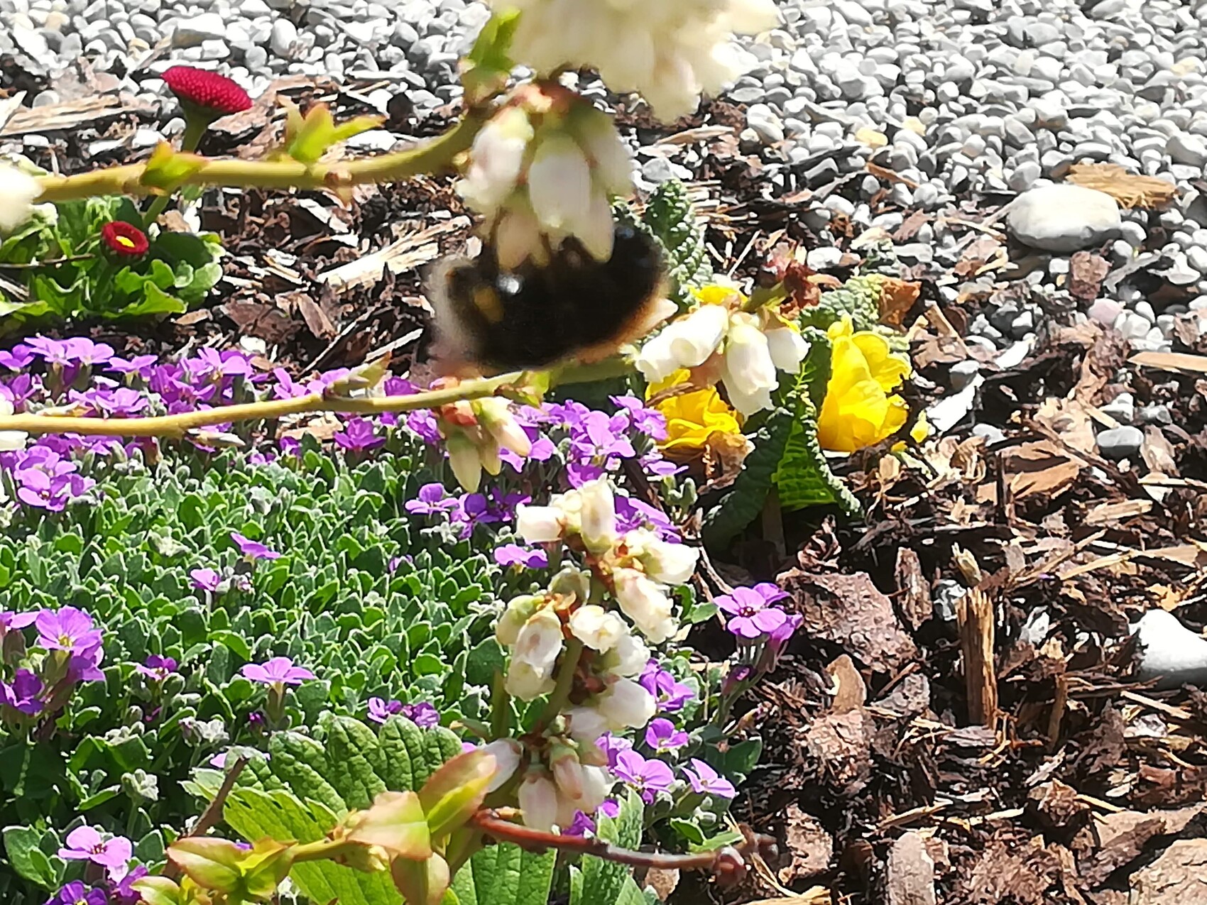 Den Hummeln schmecken unsere Blaubeerblüten. Es sind wirklich fast nur Hummeln, die da kräftig futtern: