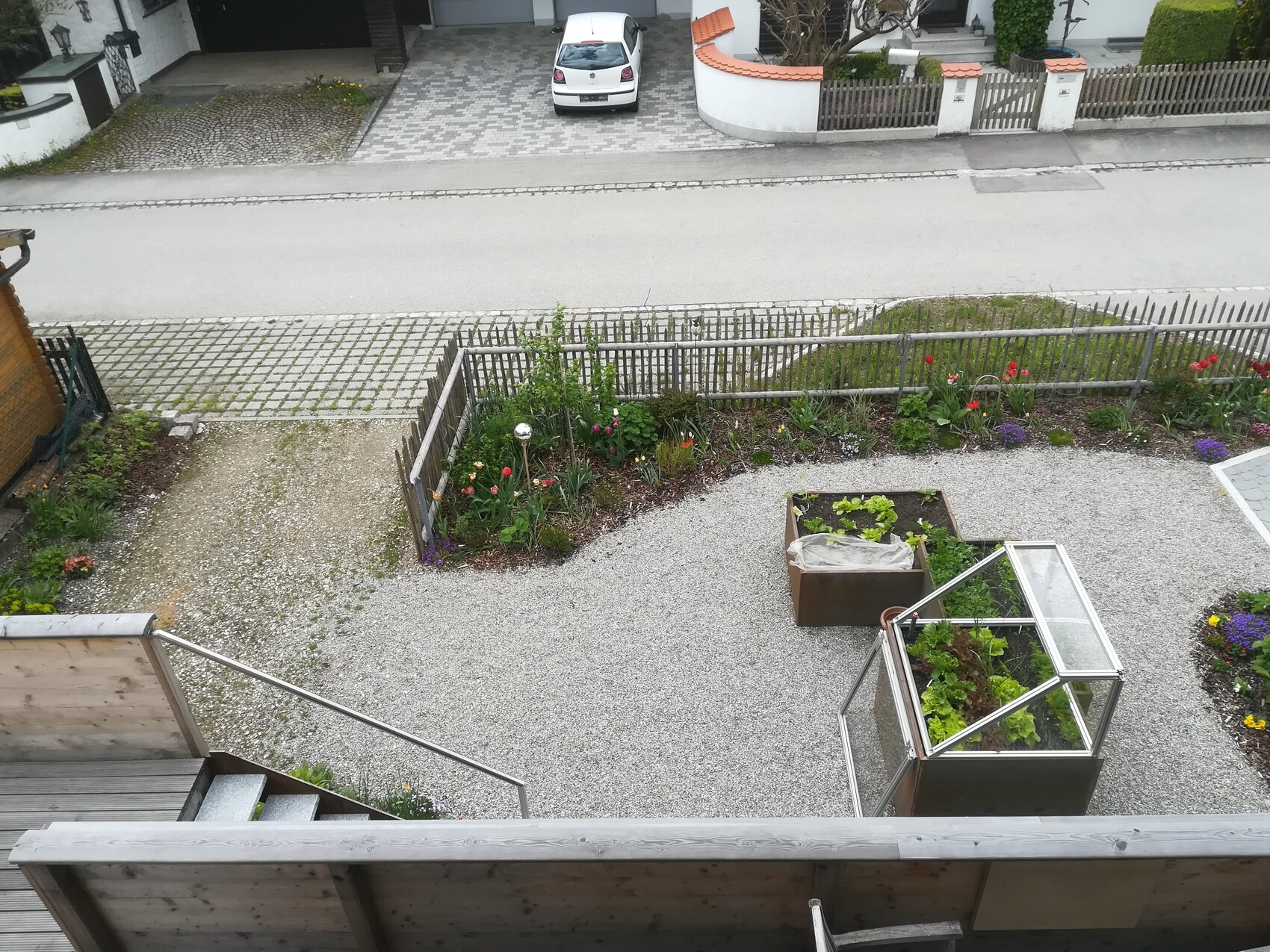 Immerhin habe ich aber dieses Jahr ein Hochbeet und für einen Bereich sogar einen Frühbeetaufsatz bekommen: