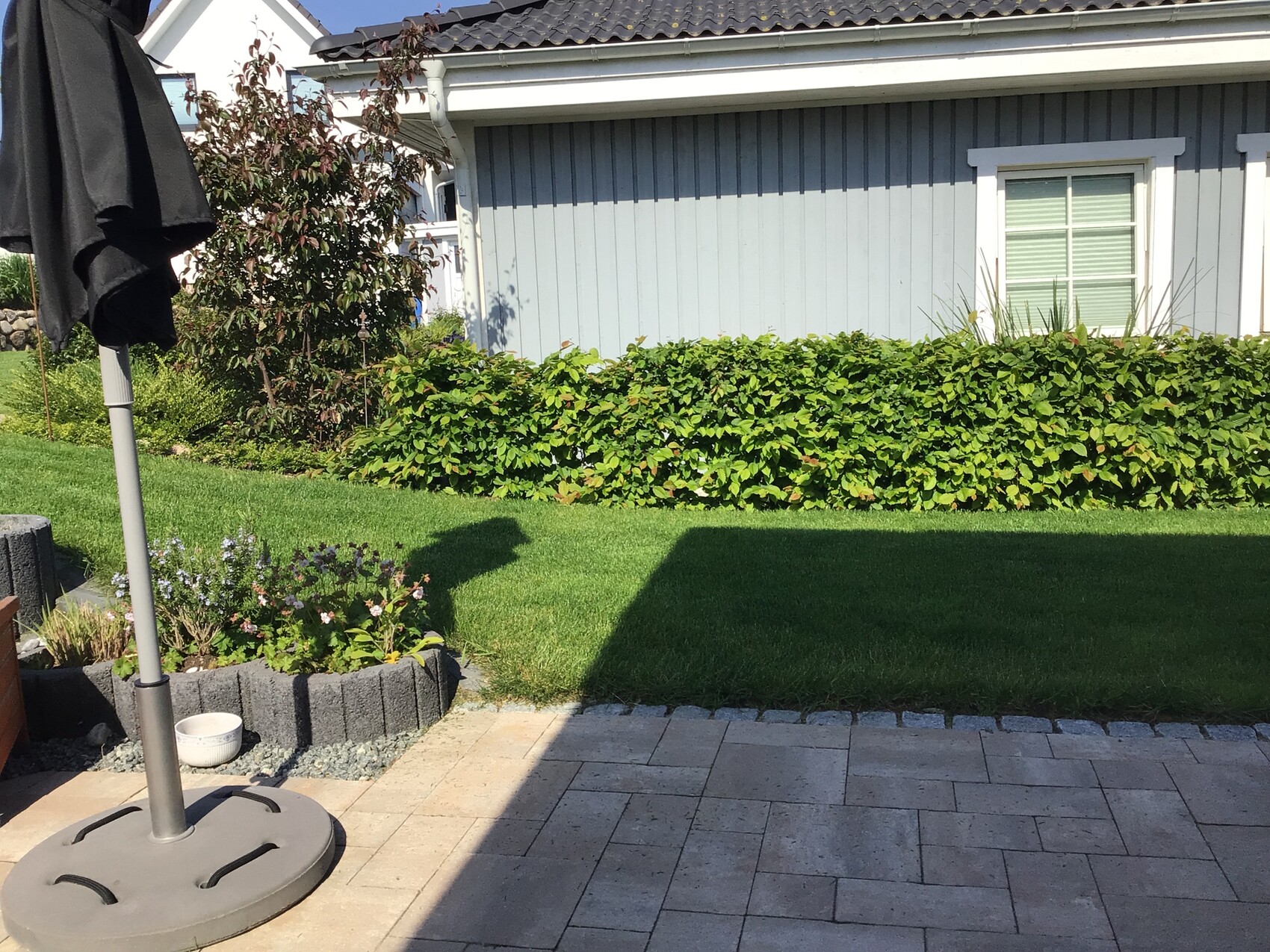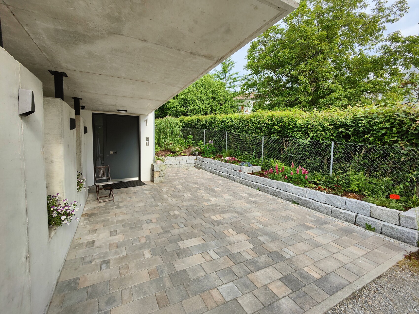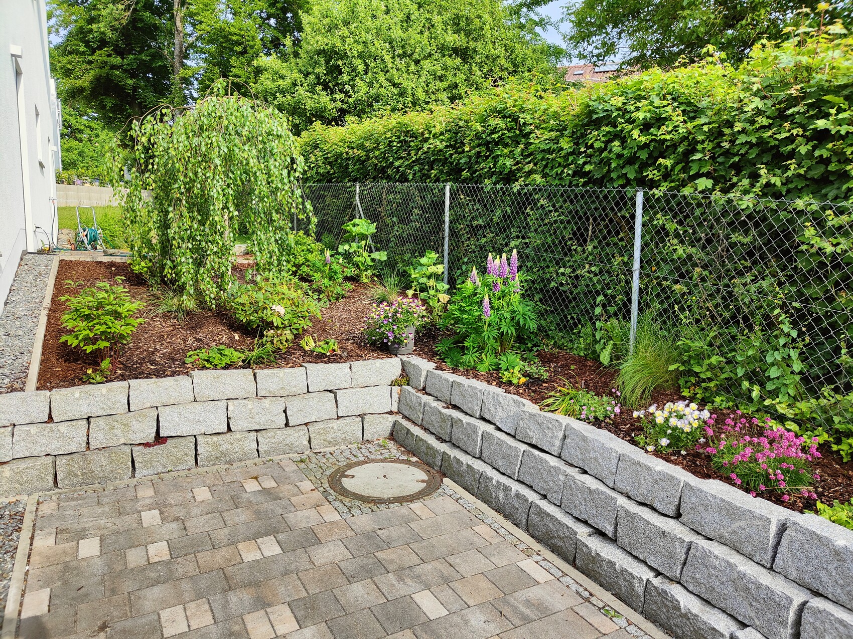 Unser Versuch, Rasen zu generieren (dort stand vor einem Jahr noch ein Baum, der entfernt wurde):