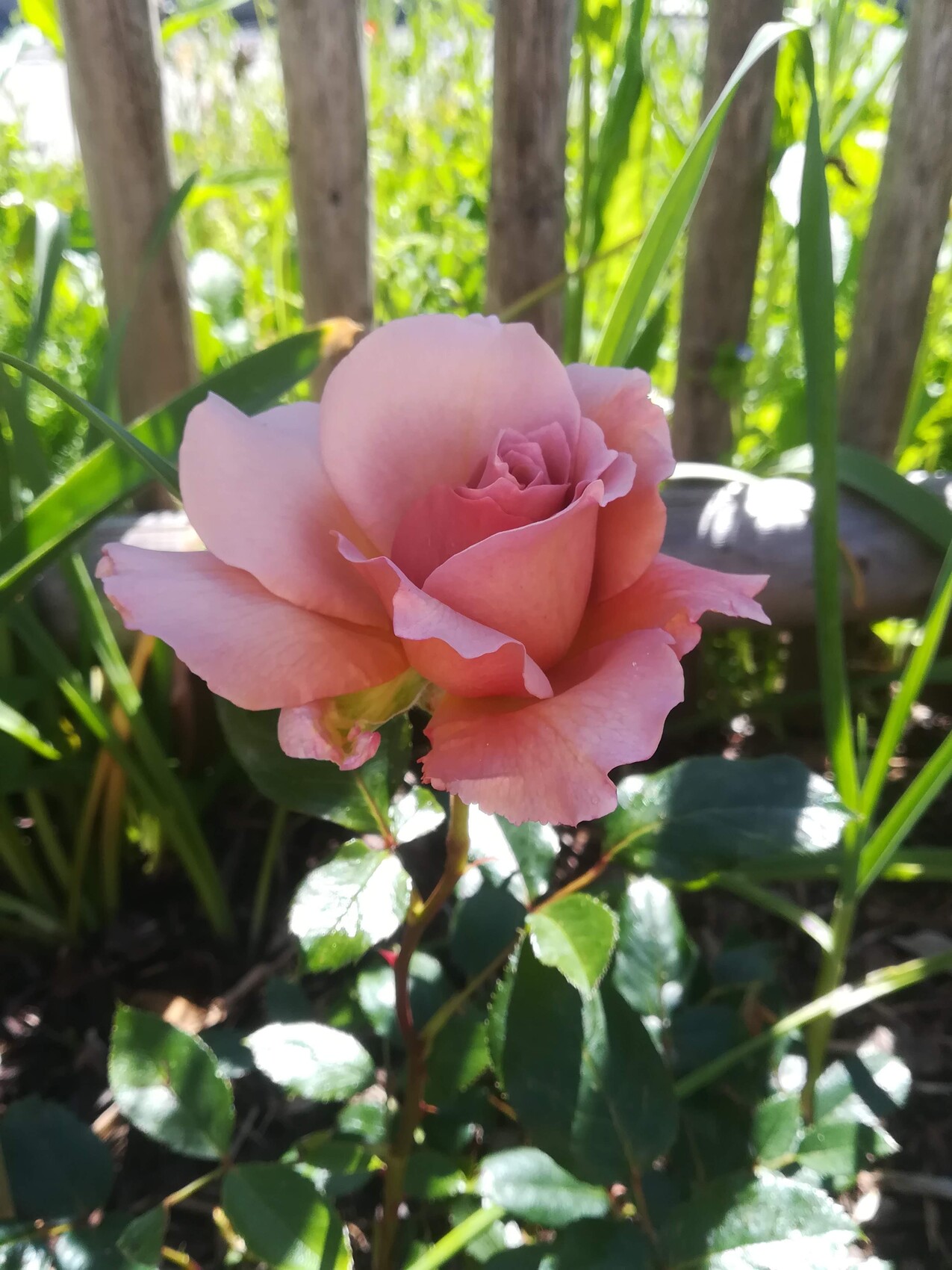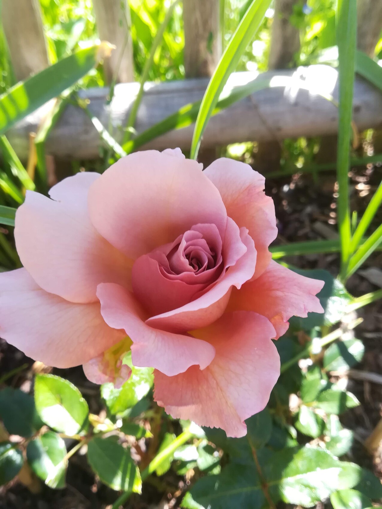 (Julia's Rose) Eine Teerose mit sehr außergewöhnlicher Färbung. Schaut hier auf dem Bild fast zu rosa aus; in Wirklichkeit ist die Farbe pergamentartiger. Wunderschön! Ich hab diese Rose gesehen und mußte sie haben. Wurzelnackt gekauft und sie verwöhnt mich schon im ersten Jahr mit einer Blüte. VORBILDLICH! Da könnten sich die Pfingsrosen mal ein Beispiel nehmen!!! Die sind mit uns umgezogen und zicken einfach.