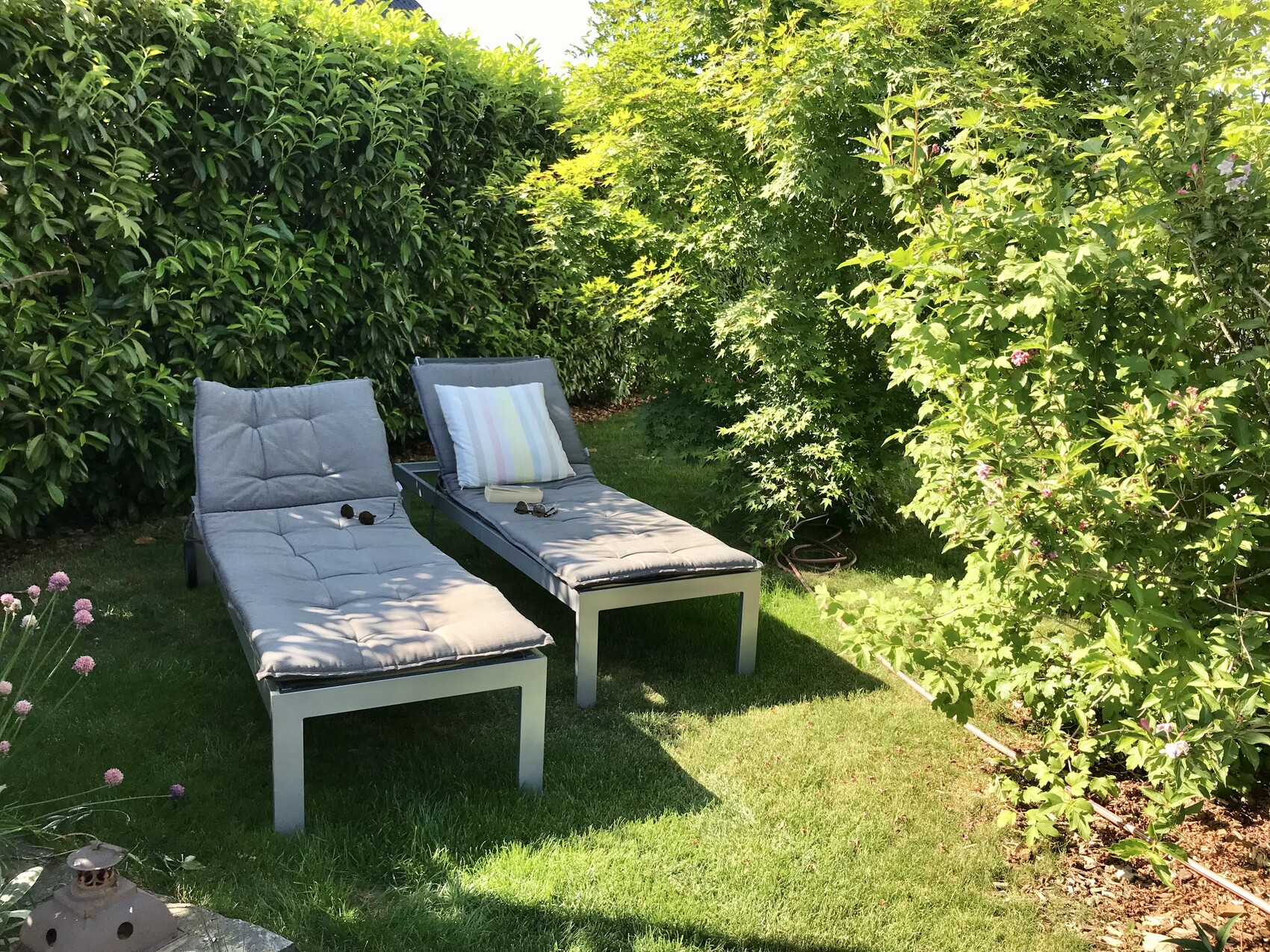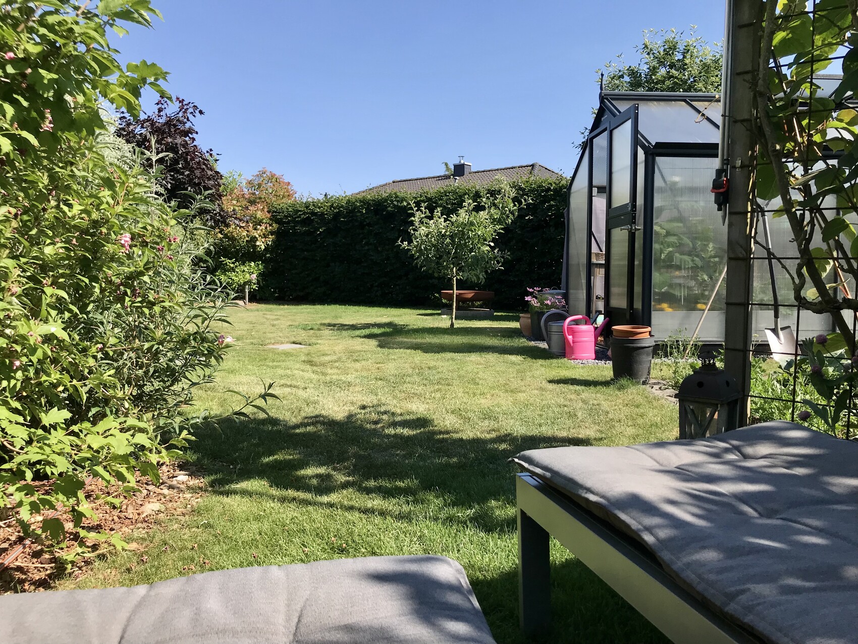 Es ist Sommer, und wir sind mit dem Boot unter wegs. Kein Garten, dafür Strand.Graswarder Heiligenhafen? Oder irre ich?S