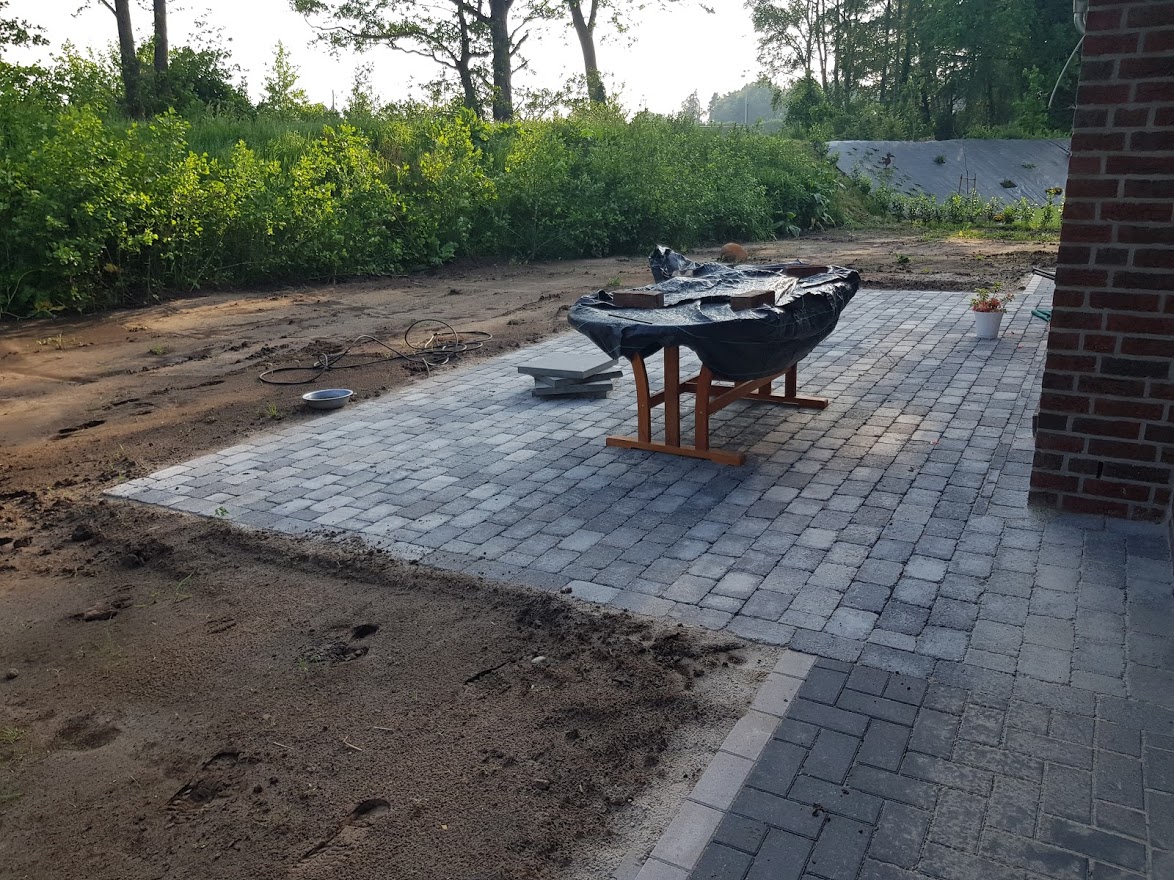 Nach den Terrassen-Arbeiten: Mutterboden grob verteilt und bisschen planiert