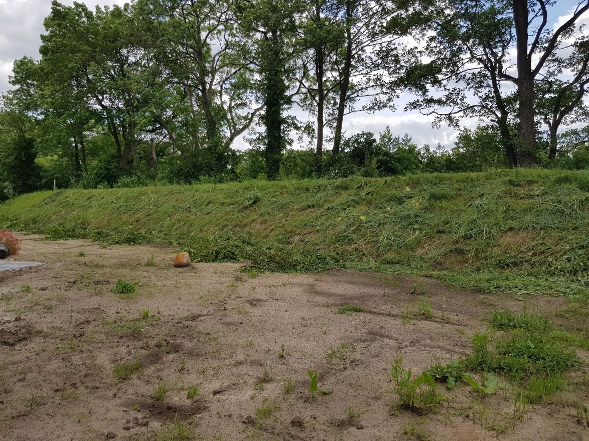 Also Folie drüber und dann werden wir das mit Bodendeckern und sonstigem Grünzeug dichtpflanzen, so dass es in ein paar Jahren hoffentlich wieder grün ist.