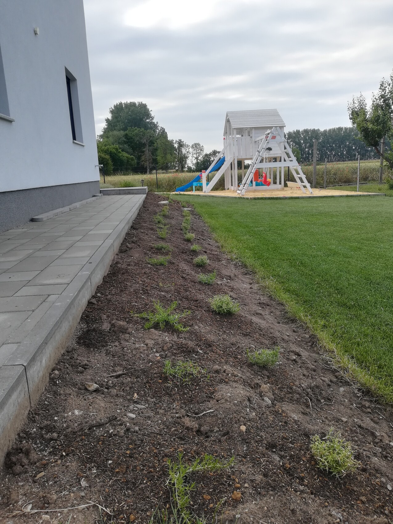 Dann haben wir die gesamte schräge am Haus von der Grasnarbe befreit und auch phlox gepflanzt unten kommt dann auch noch eine mähkante für der Roboter hin.