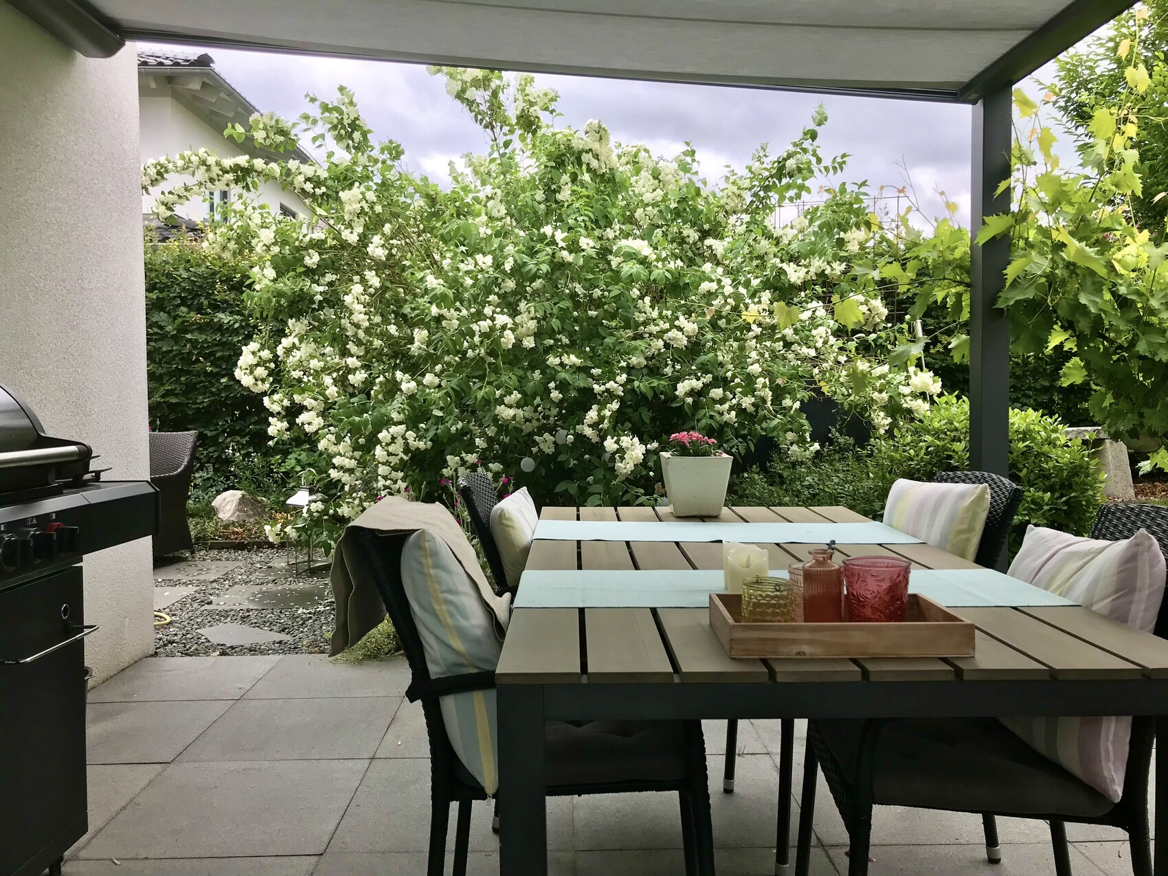 Und dann ist unsere Dreieck an der Terrasse welches wir letztes Jahr bepflanzt haben regelrecht explodiert.