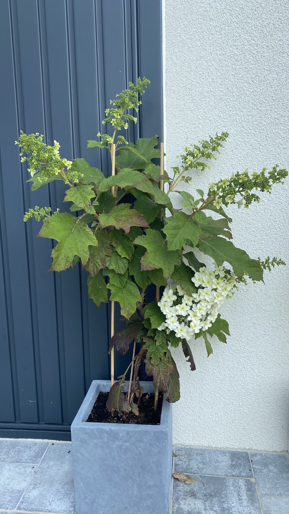 Die Hortensie gibt jetzt Vollgas, wird nächste Woche vom Topf befreit.