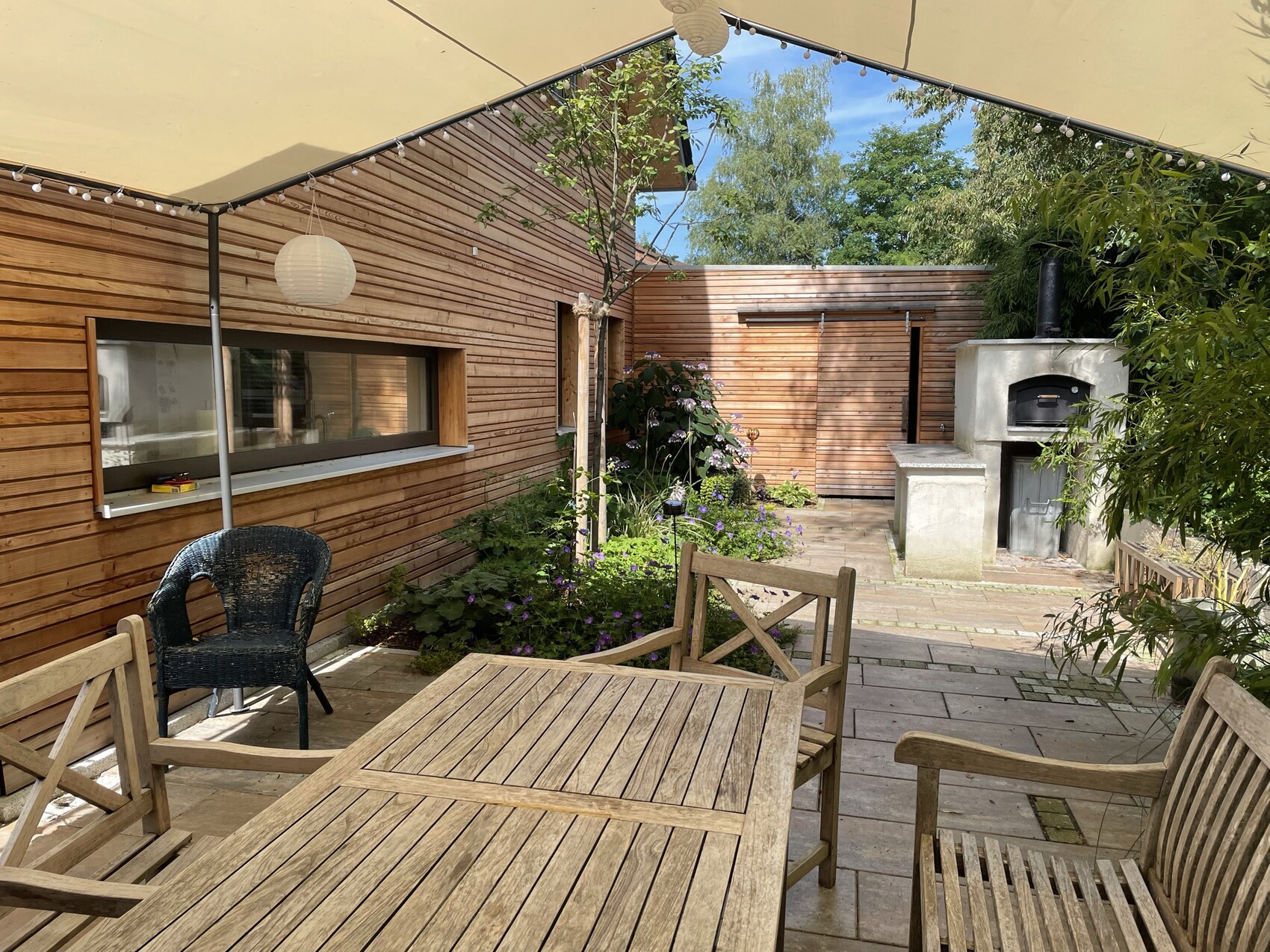 Außerdem haben wir noch etwas Holz bestellt und die Holzlegen endlich aufgefüllt, so daß die häßliche Nachbarwand nicht mehr so präsent ist. Jetzt haben wir wirklich ein lauschiges Plätzchen: