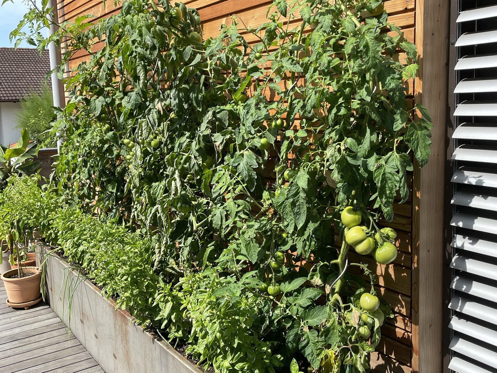Mensch, Steffi, bei euch ist alles weiter. Dieses Jahr habe ich ja früh mit der Tomatenzucht angefangen, weil ich hoffte, die Erntephase etwas nach vorne zu kriegen. Aber des diesjährige kalte Klima hat das wieder völlig zunichte gemacht. Wir werden wohl wieder erst gegen Ende August mit unseren Tomaten rechnen können. Vereinzelt haben wir ein paar Cherrys ernten können, aber das waren wohl mutige Frühboten.