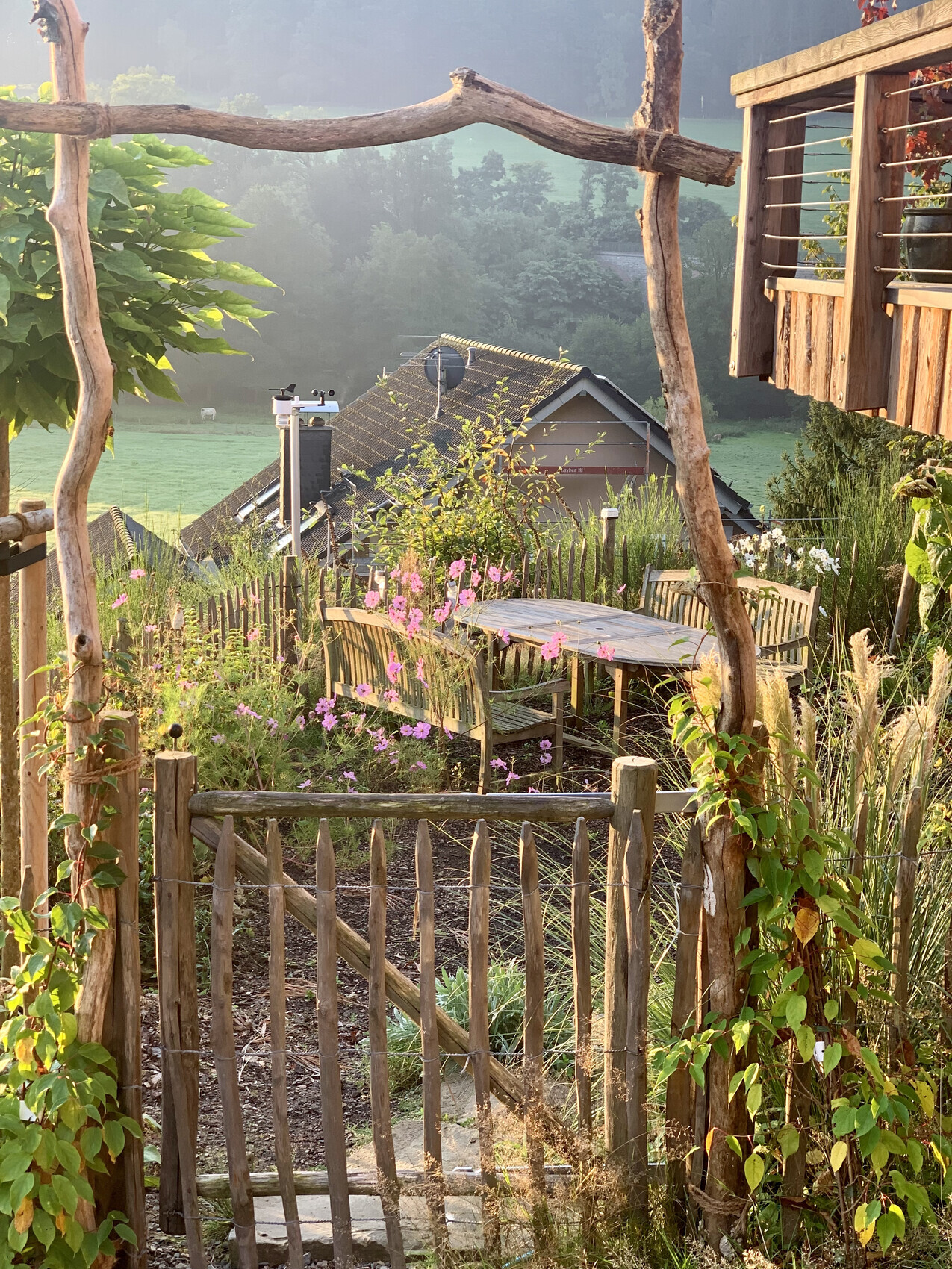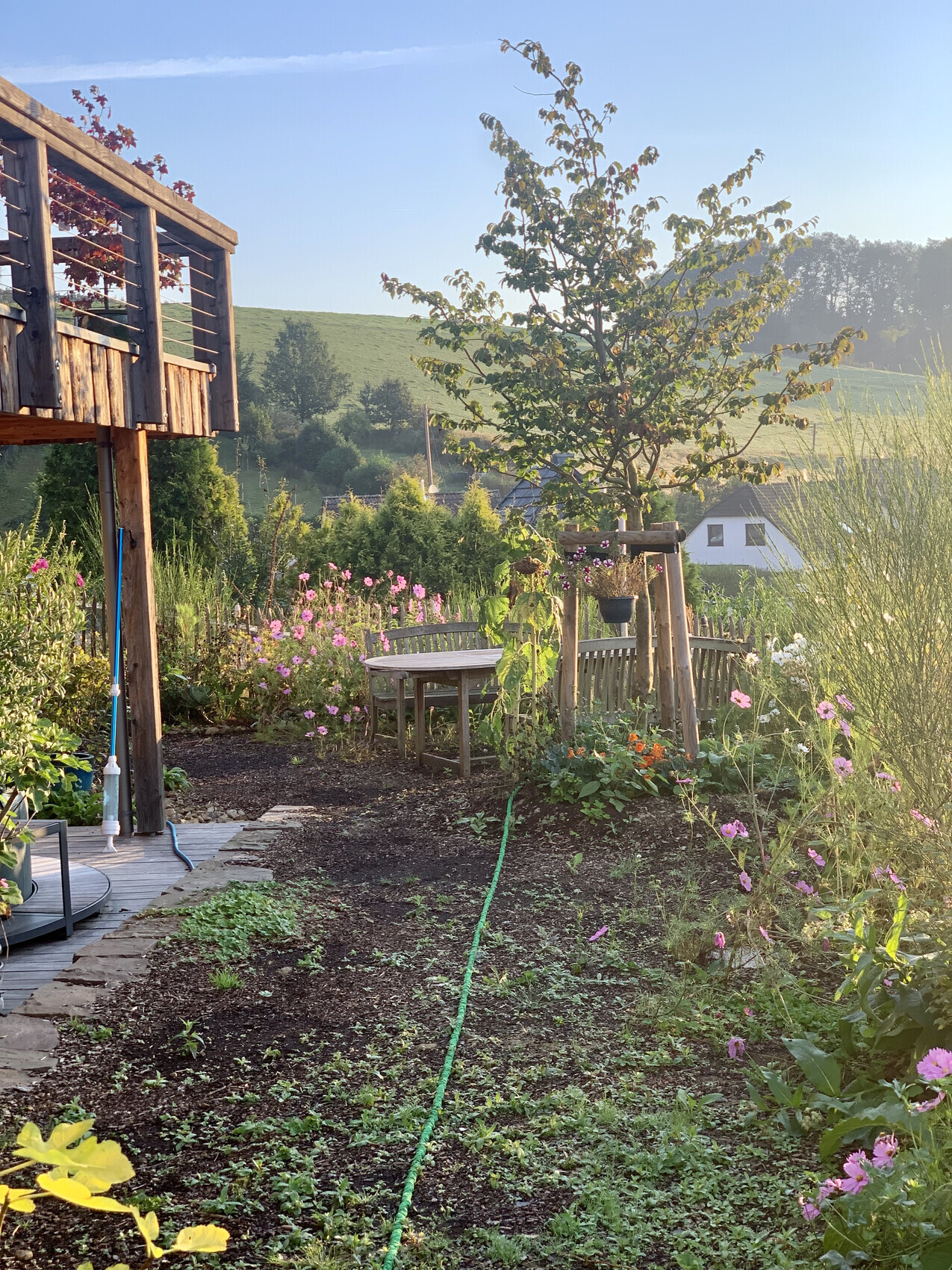 Die dominierende Pflanze in diesem Jahr ist das Chinesische Springkraut, welches sich auf fast alle gerodeten Flächen extrem ausbreitet. Zugegebenermaßen: es blüht hübsch.Aber ich persönlich mag den süßlichen Geruch überhaupt nicht, daher wäre ich nicht so begeistert, wenn das die Regentschaft in meinem Garten übernehmen wurde. Aber auf den Fotos schaut es einfach nur hübsch aus.Der ganze Garten gefällt mir so - wir haben es ja ähnlich. Keinen Rasen und viel wildes Gewachse ;-)