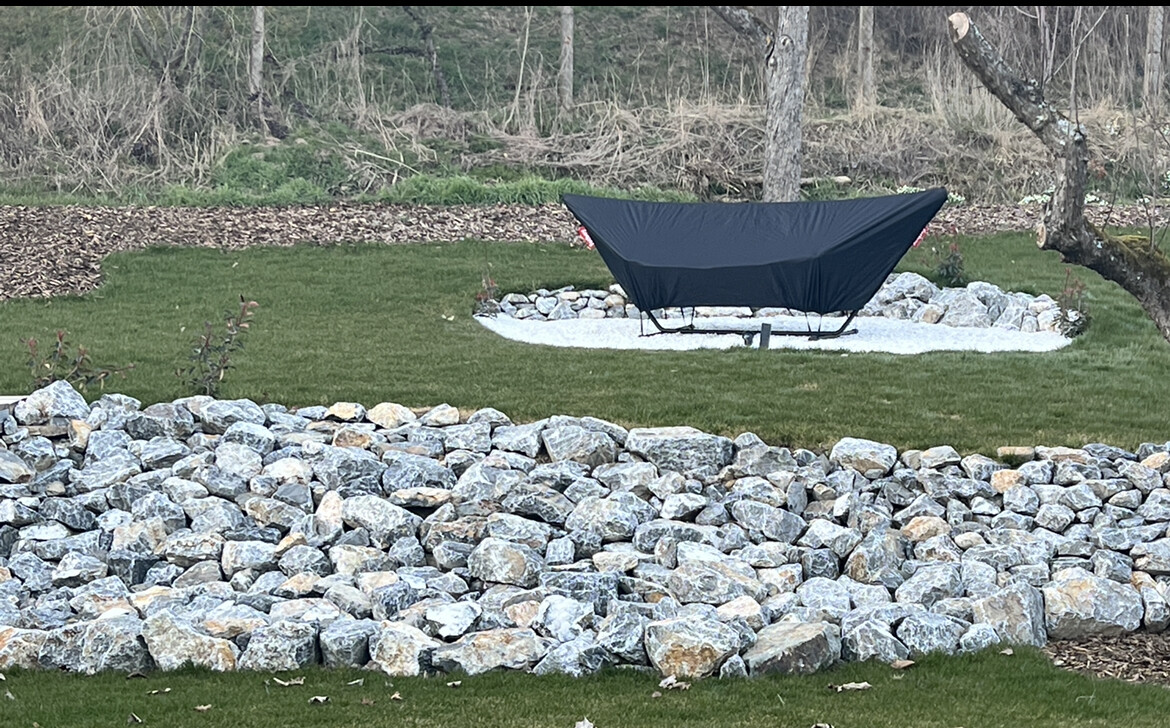 Hab noch zwei Sitzsäcke und eine Feuerschale die da eigentlich hin sollen, dann wird’s eher wieder was zum sitzen 🙂 Die Hängematte spielt jetzt nur den Platzhalter, wird langfristig aber einen anderen Platz bekommen.