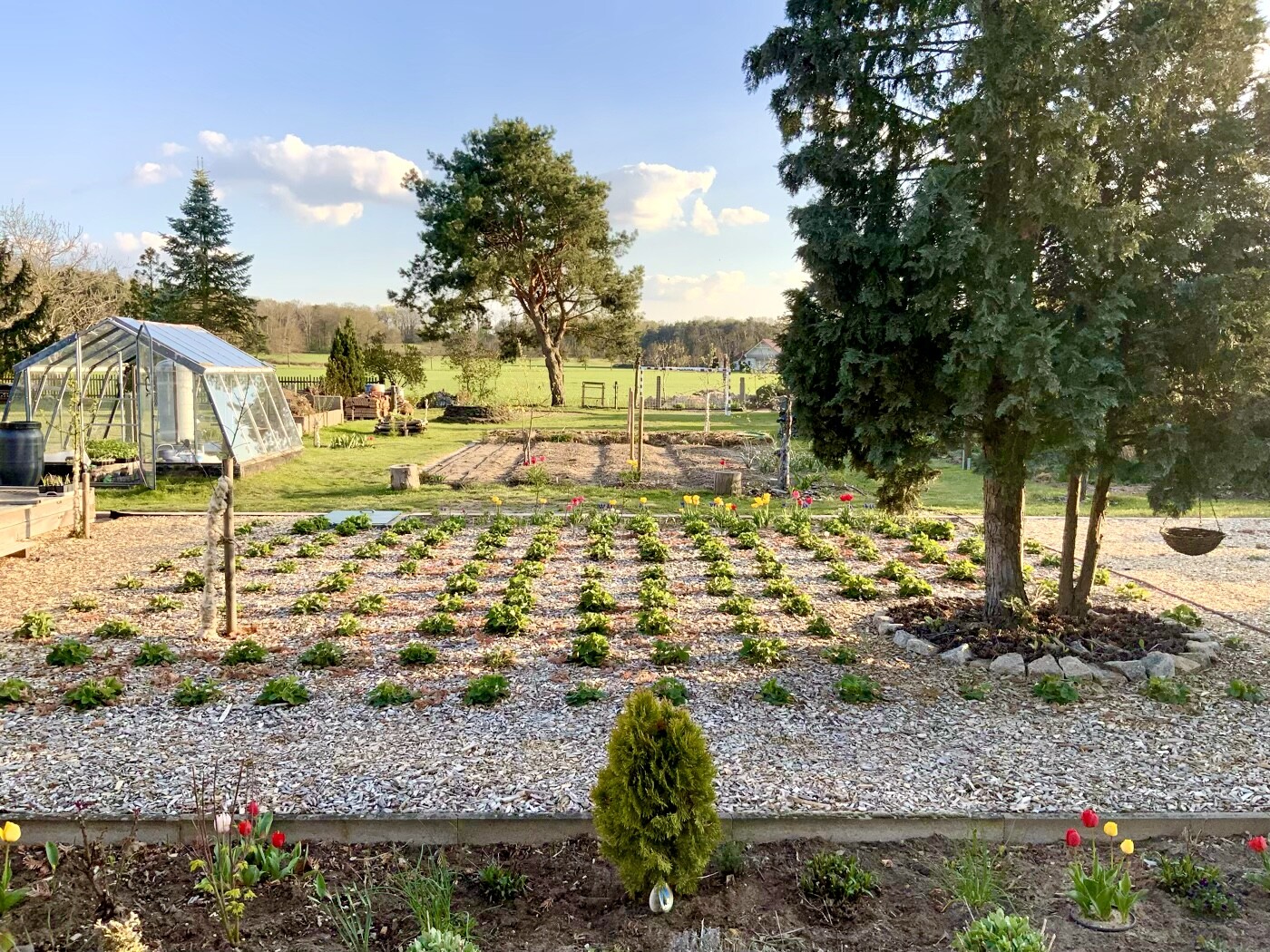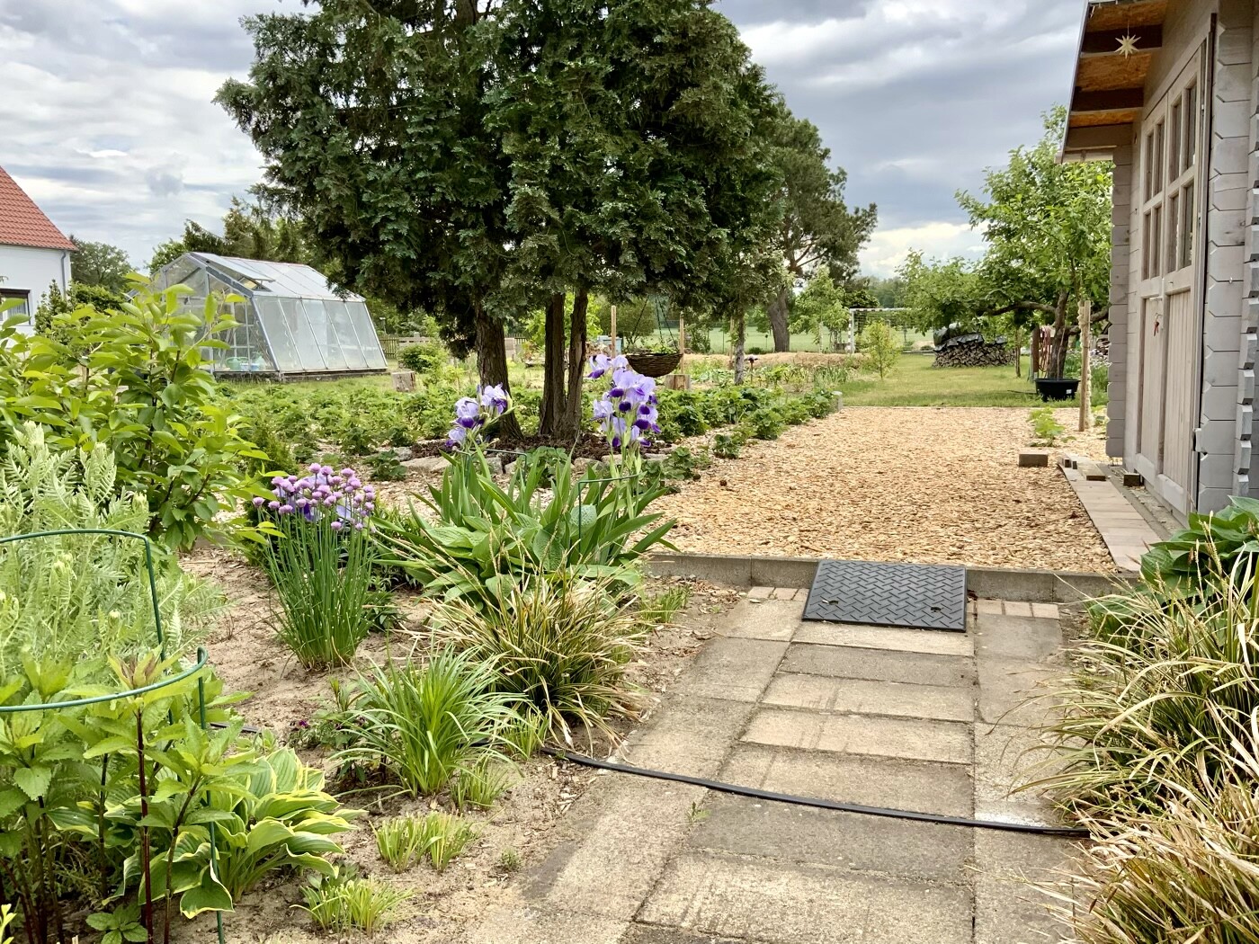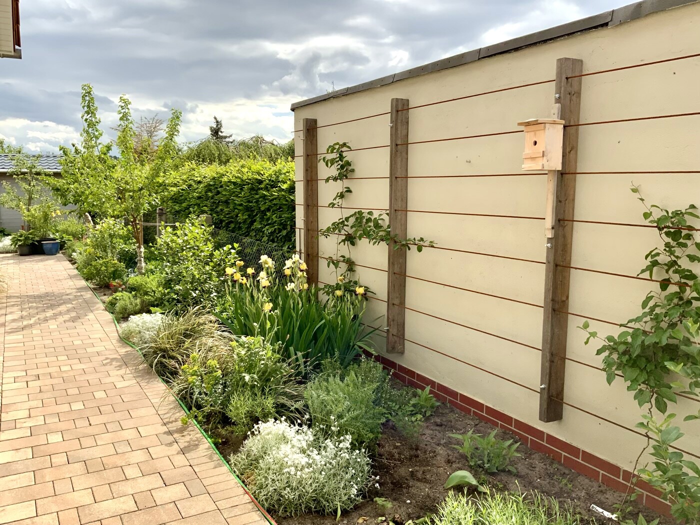 Dann noch ein paar Bilder vom Garten. Der Garten ist übrigens 4 Jahre alt! Alles selbst gepflanzt. Vieles hatte ich aus unserem früheren Garten als einzelne kleine Pflänzchen mitgebracht und immer wieder durch Teilung vermehrt. Das ist so einfach und schont den Geldbeutel ungemein. Lücken fülle ich übergangsweise mit Einjährigen, wie Studentenblumen, Petunien, Ringelblumen, Kapuzinerkresse... Einfach die Samen reingeworfen… klappt prima. Die Petunien und Tagetes hatte ich dies Jahr mal vorgezogen, so haben sie Vorsprung und blühen jetzt schon langsam.