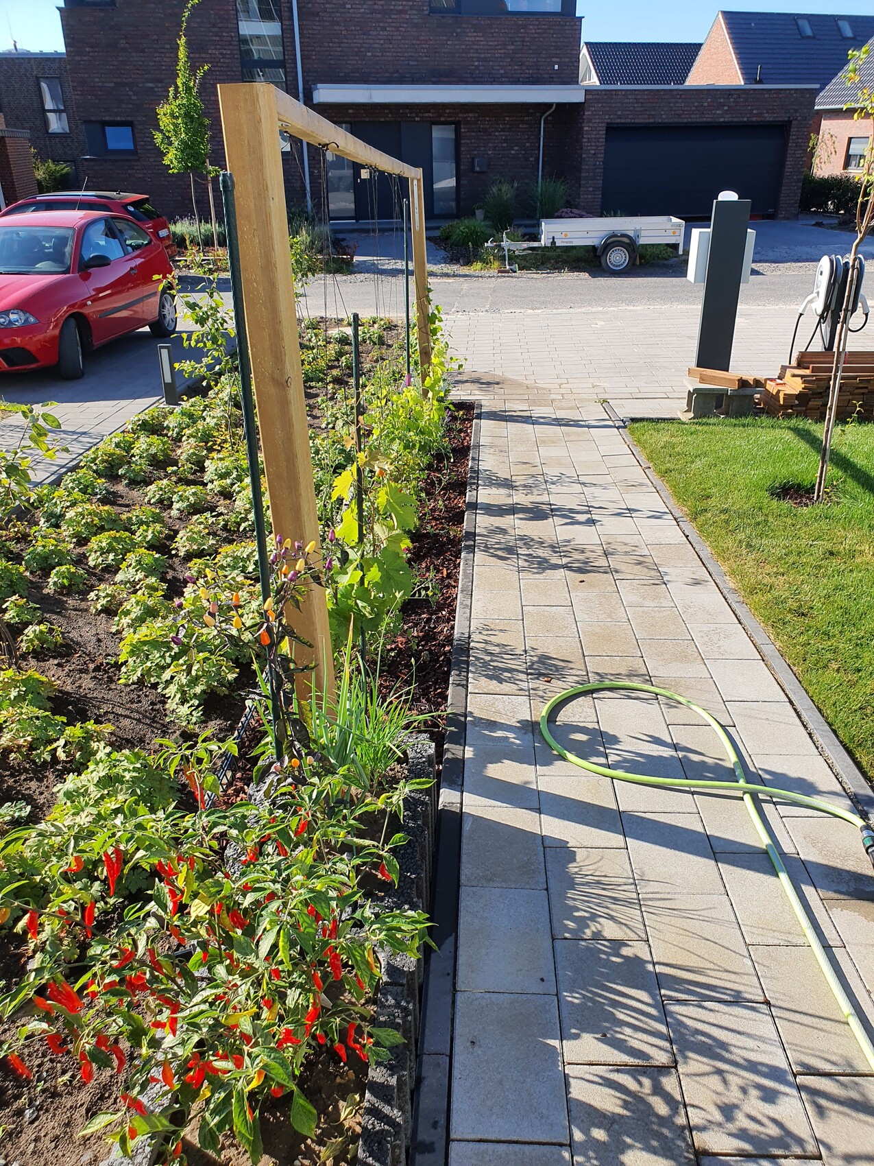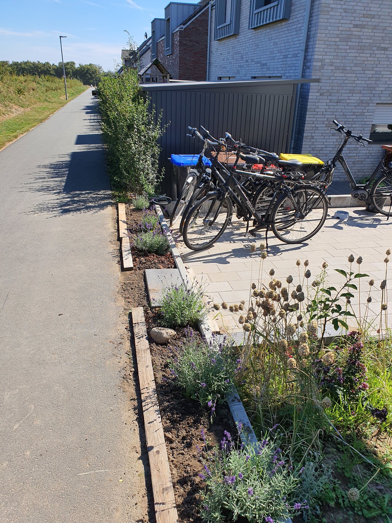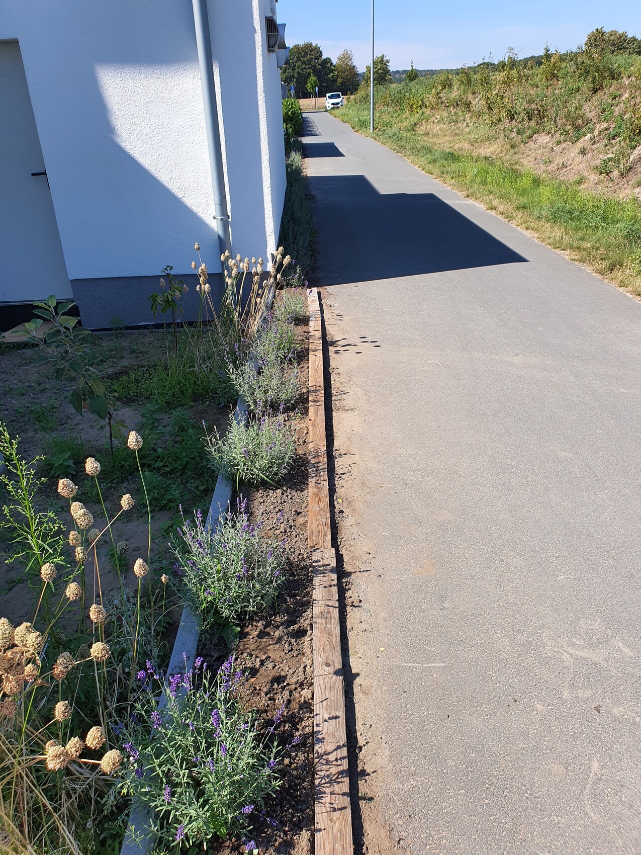 i_b_n_a_n25.08.22 21:57tja, das Grundstück gehört halt teils der Gemeinde (ca. 10-15cm). Deswegen habe ich zur Zeit davon abgesehen das fester zu befestigen. Die Brettchen liegen da nur damit die Viecher nicht den Pinienmulch überall verteilen (ist noch nicht drin ...) EVtl. Werde ich die Bretter noch mit Erdspiessen befestigen aber mehr eher nicht. Wenn der Lavendel gross und stark geworden ist braucht der keine Begrenzung mehr. Die Kante (um Wasser vom Grundstück wegzuhalten bzw. abzuführen) liegt ja dahinter
