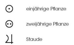 Es gibt aber tatsächlich Symbole für die Lebensdauer. In Bestimmungsbüchern findet man die auf jeden Fall, im Gartencenter würde ich jetzt ein großes Fragezeichen setzen.
