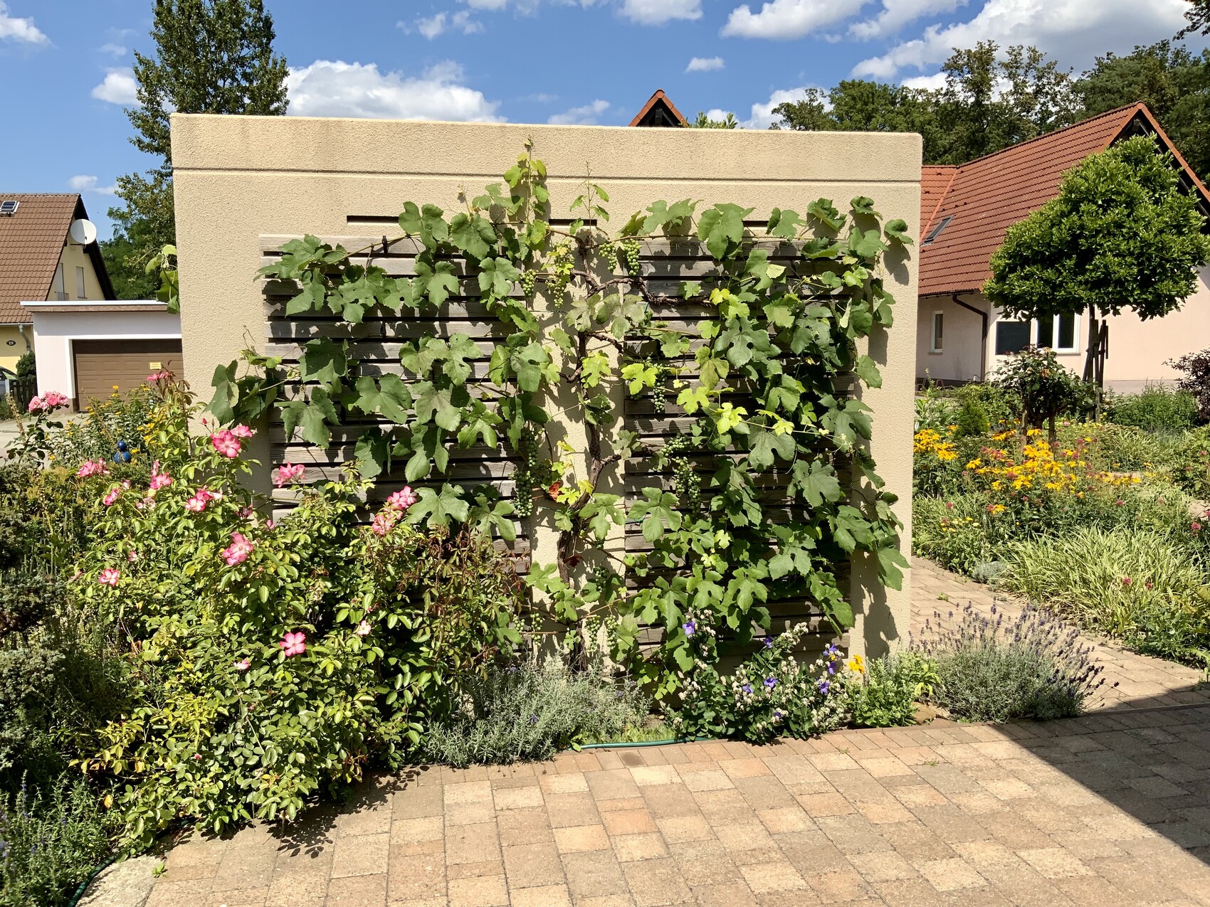 Die Clematis ist mir verkümmert aus mir unerfindlichen Gründen. An der Stelle steht jetzt eine Passionsblume.