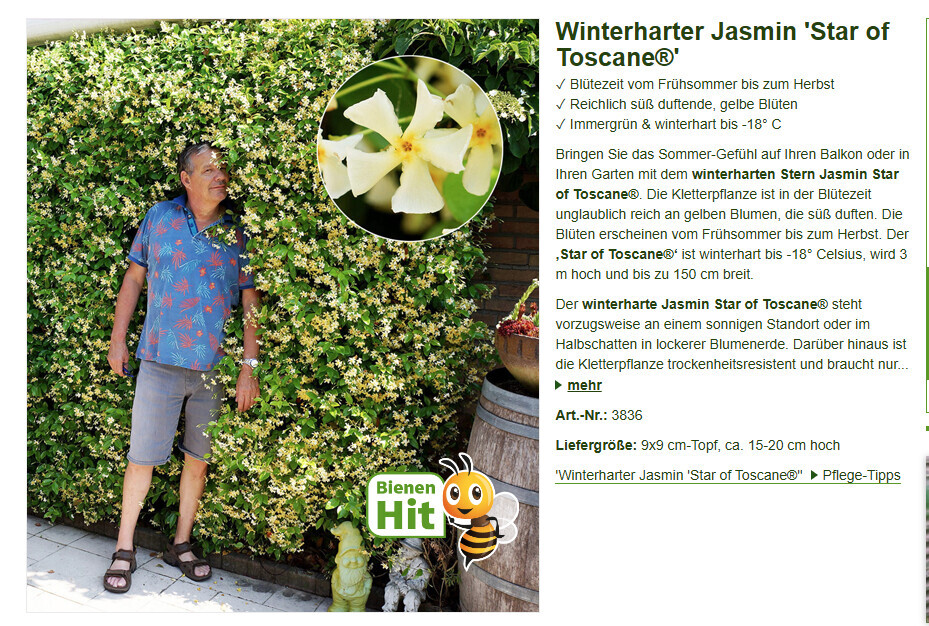 Sternjasmin winterhart habe ich als Heckenbepflanzung im Schattengarten. Geht ganz gut, aber nicht sensationell. Der Blauregen vom Nachbarn ist deutlich schneller.