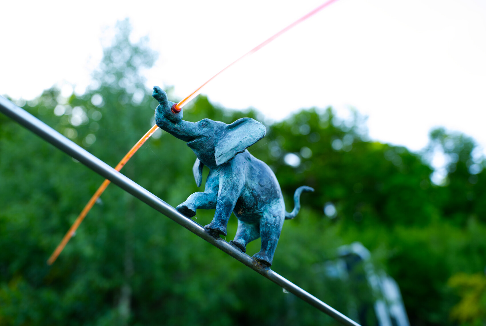hier balanciert ein Bronze-Elefant (ca. 15cm hoch) in 2,5 m Höhe auf einer Edelstahlstange und wacht über den Eingang.