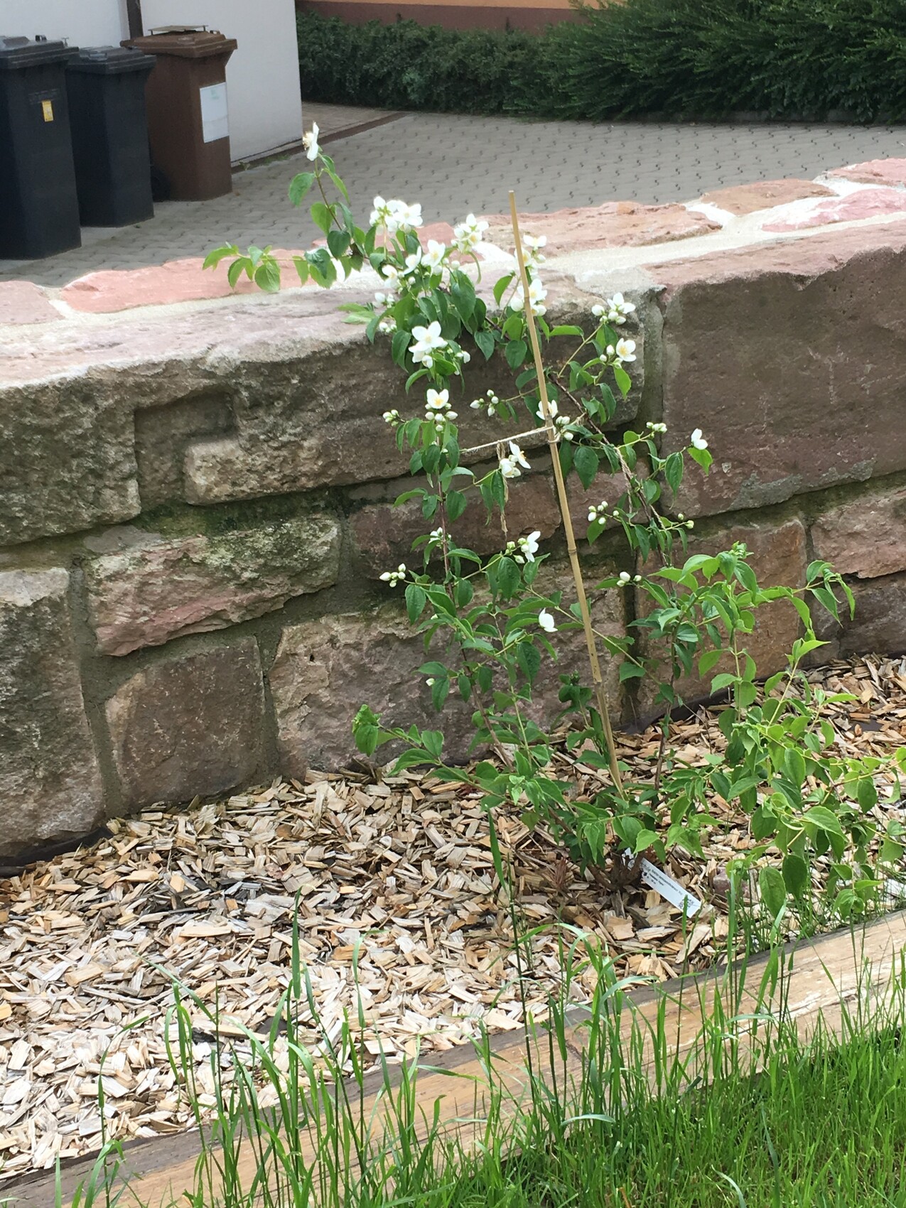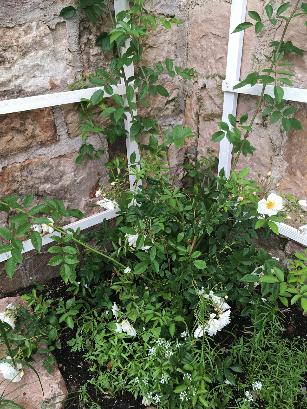 Der Jasim blüht und die Ramblerrose die ich erst im Frühjahr gepflanz habe. Stelle heute Abend ein paar Bilder online.