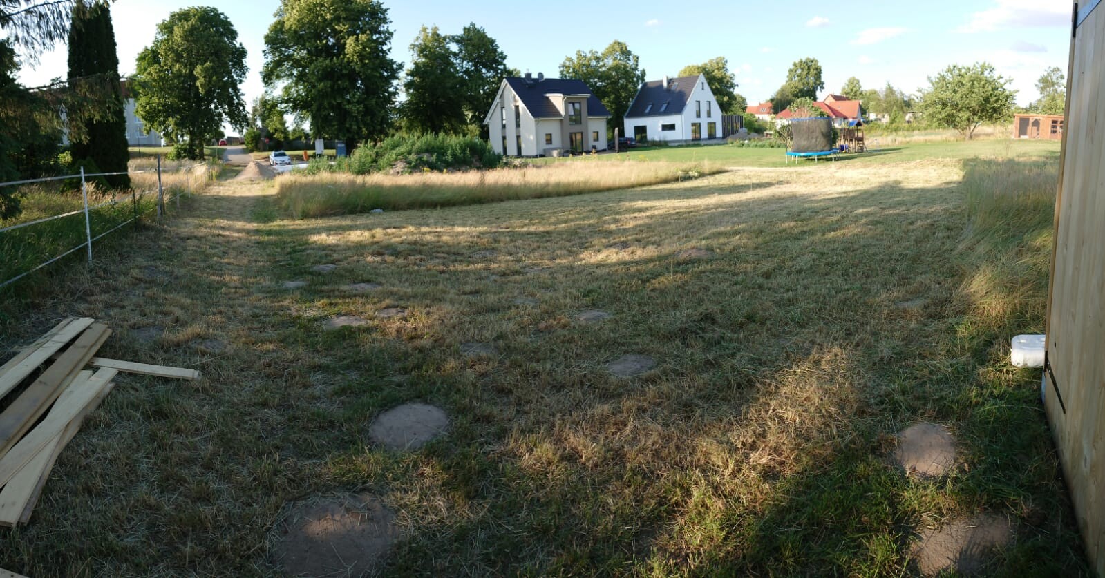 Alles mit einem Benzin Rasenmäher der eventuell noch aus der DDR stammt und nur 30 Zentimeter Schnittbreite hat. Zwischenzeitlich sahen wir so erbärmlich aus, dass uns der Nachbar seine Benzin Motorsense in die Hand gedrückt hat für das schlimmste Unkraut. Das alles natürlich auch bei 30 Grad und kein bisschen Wind..... Immerhin haben wir nun auch das erste Mal gegrillt auf dem Grundstück