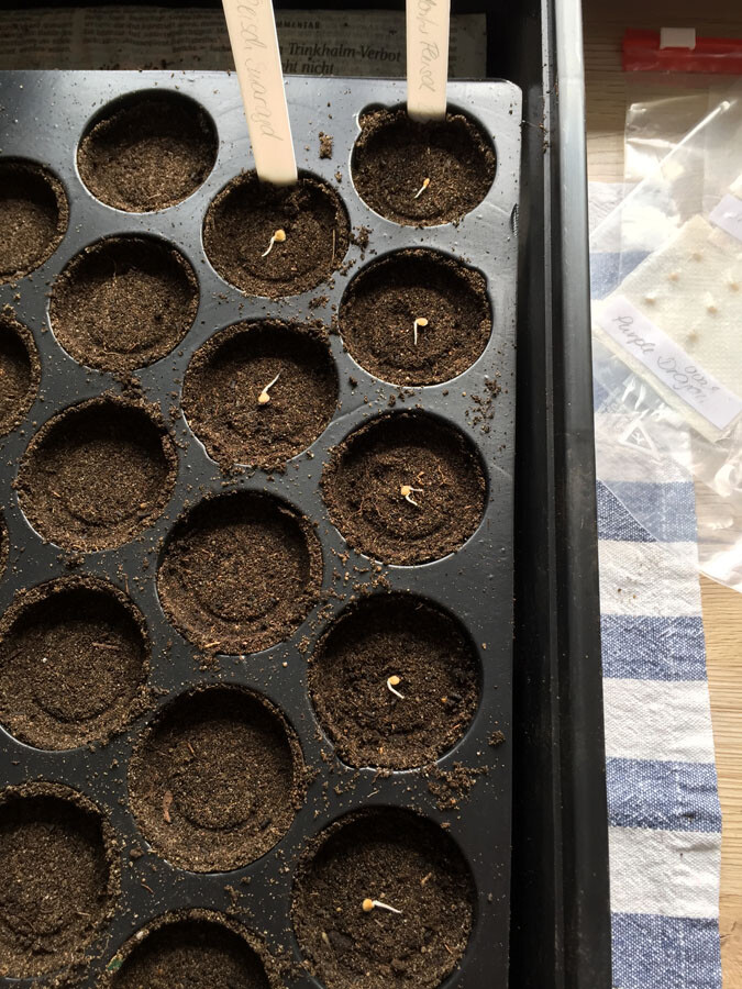 In diesem Jahr möchte ich zum ersten Mal Gemüse anbauen. Dafür habe ich schon mal Beete "ohne Umgraben" angelegt. Einfach Pappe auslegen, welche den alten Rasen und das Unkraut unterdrücken soll und dann eine dicke Schicht Kompost darauf. Den haben wir (noch) zur Genüge. Nebenher versuche ich Gemüsepflänzchen selbst zu ziehen. Da ich blutiger Gemüse-Anfänger bin, hole ich mir alle Infos aus dem Netz. So z.B. keime ich die Tomatensamen zunächst vor und sobald sich was zeigt, gebe ich die winzigen Keimlinge in Anzuchtschalen und halte sie weiter schön warm.. an diesem Punkt bin ich gerade.. Ich empfinde grad alles als wahnsinnig sensibel und zerbrechlich.. zwischen Werden und Eingehen scheint nicht viel Spielraum.. LG