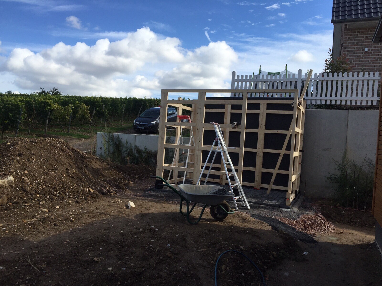 Drinnen liegen alte Gehwegplatten, die waren halt noch da, der Bereich wurde vorher als kleine Spielterrasse für die Kinder genutzt.