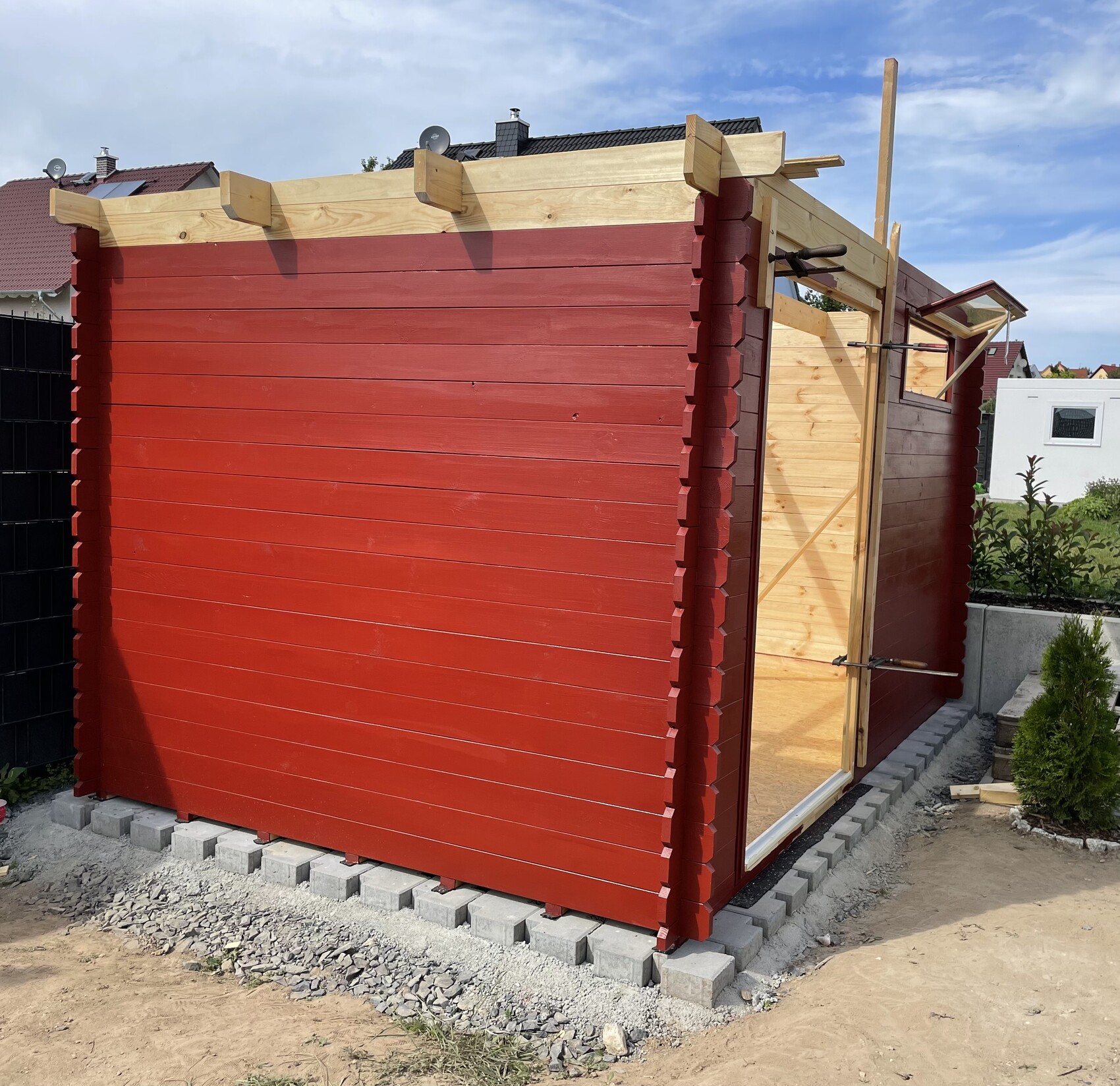 Die Stellfläche fürs Gartenhaus ist abgerammt. Allerdings ist das alles nicht ganz waagerecht. Bekommt man das mit abrammen (nahezu) waagerecht, oder ist sowas aussichtslos? Da ich ja auf den abgerammten Schotter die Plastersteine legen will, was so ja wohl eher nichts wird.Mit ein bisschen Fertigbeton und einer Richtlatte wird das schon was. Nur Mut. Mein Haus steht auf verdichtetem Schotter, drauf jeweils mit Abstand Beton-Gehwegplatten 30x30, in Beton gelegt. Dann die Pads und dann der Bodenrahmen, alles selbst gemacht. Mal ne Frage weil ich demnächst auch mein Gartenhaus aufbaue.