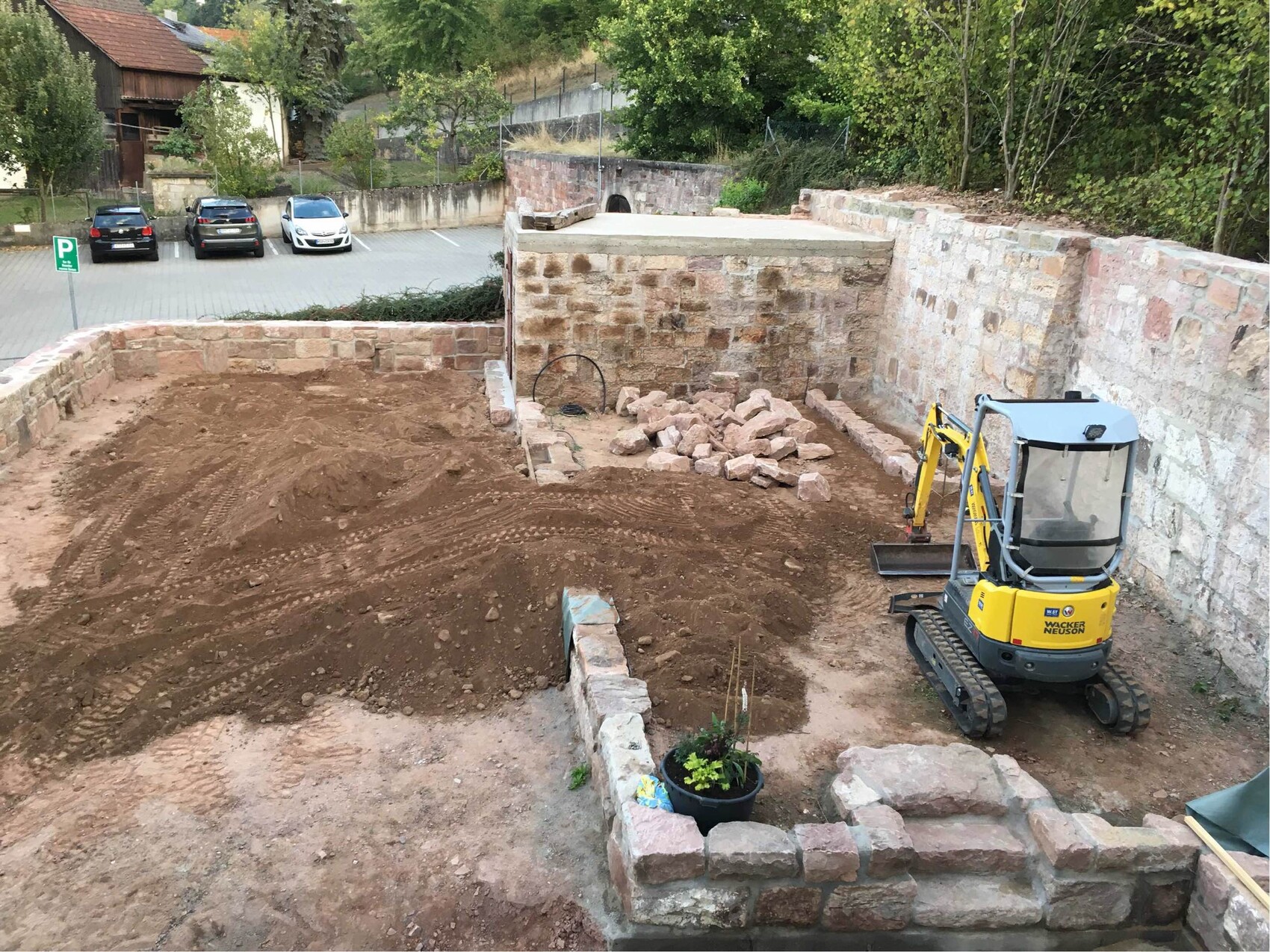 Haydee, das kann richtig hübsch werden. Im jetzigen Zustand erinnert mich das an so eine archäologische Ausgrabungsstelle in Griechenland. Aber das ändert sich ja. Zwischen den ganzen Steinen sind bestimmt Schlangen, Scorpione und Lurche und so, und böse Spinnen auch. Und wenn man da noch etwas buddelt, findet man bestimmt noch Knochen von Gefolterten ausm 30 jährigen Krieg.....