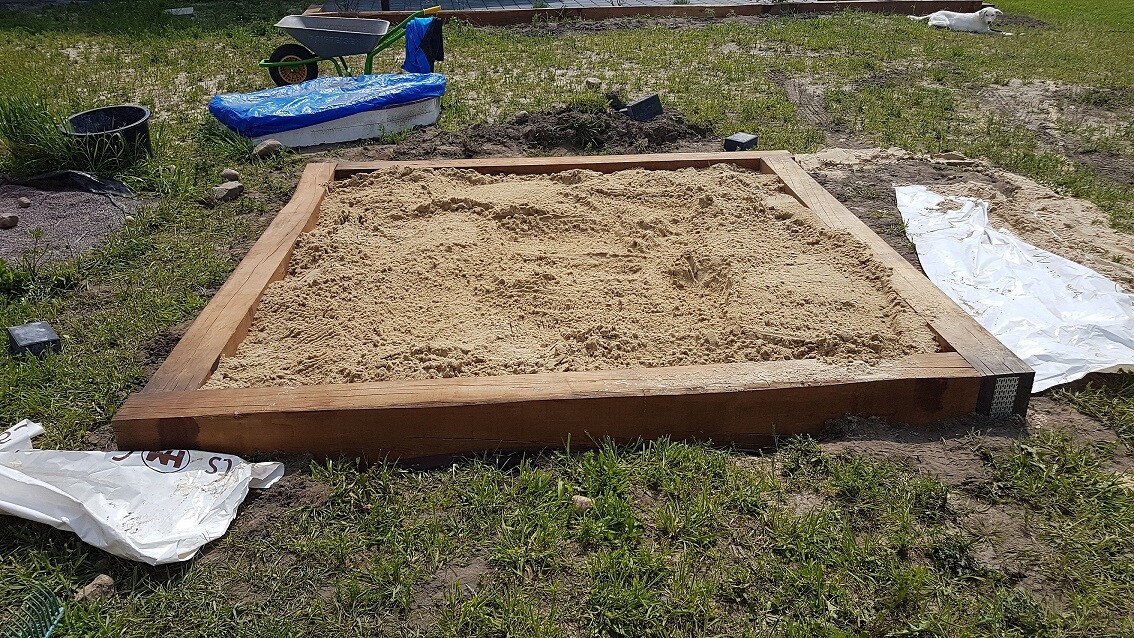 @bon1980 : Leider keine, wo nicht Personen darauf sind. Da müsste ich bei Gelegenheit welche machen. Habe aber mal eins angehängt vom Sandkasten. Besteht auch aus den Schwellen, nur dass die hier hochkant liegen.