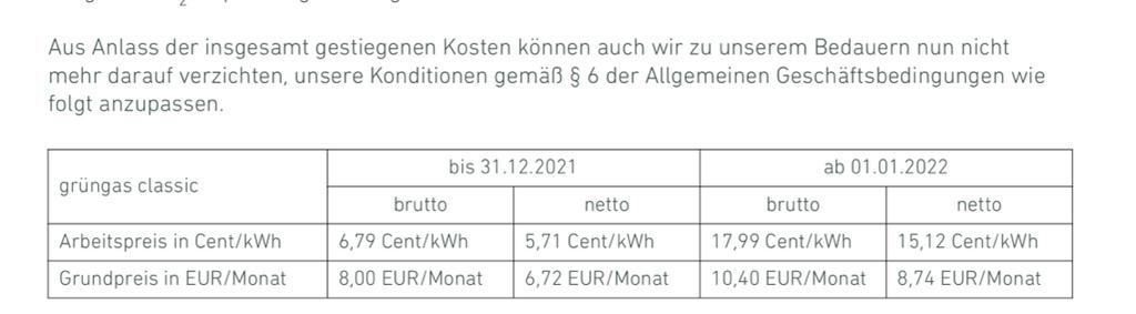 bei mir kamen gestern auch zwei Preisänderungen rein, erstmal Gas: