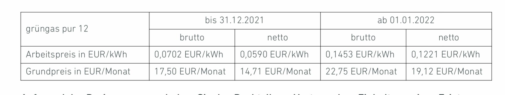 ᐅ Gaspreiserhöhung zum *1.1.2022*