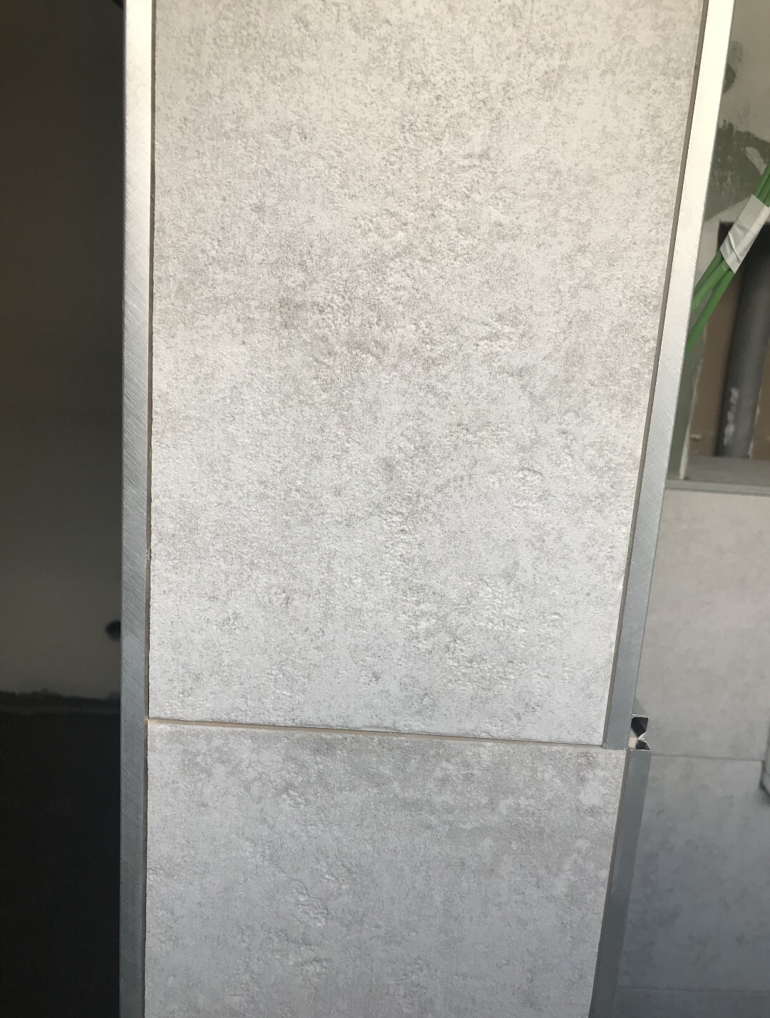 An der Seite sieht man schön die Fliesenschiene, allerdings mit einem Versatz von 1 cm, auf obene erklärten Gründen. Meine Frau kann deswegen nicht ruhig schlafen 🙂