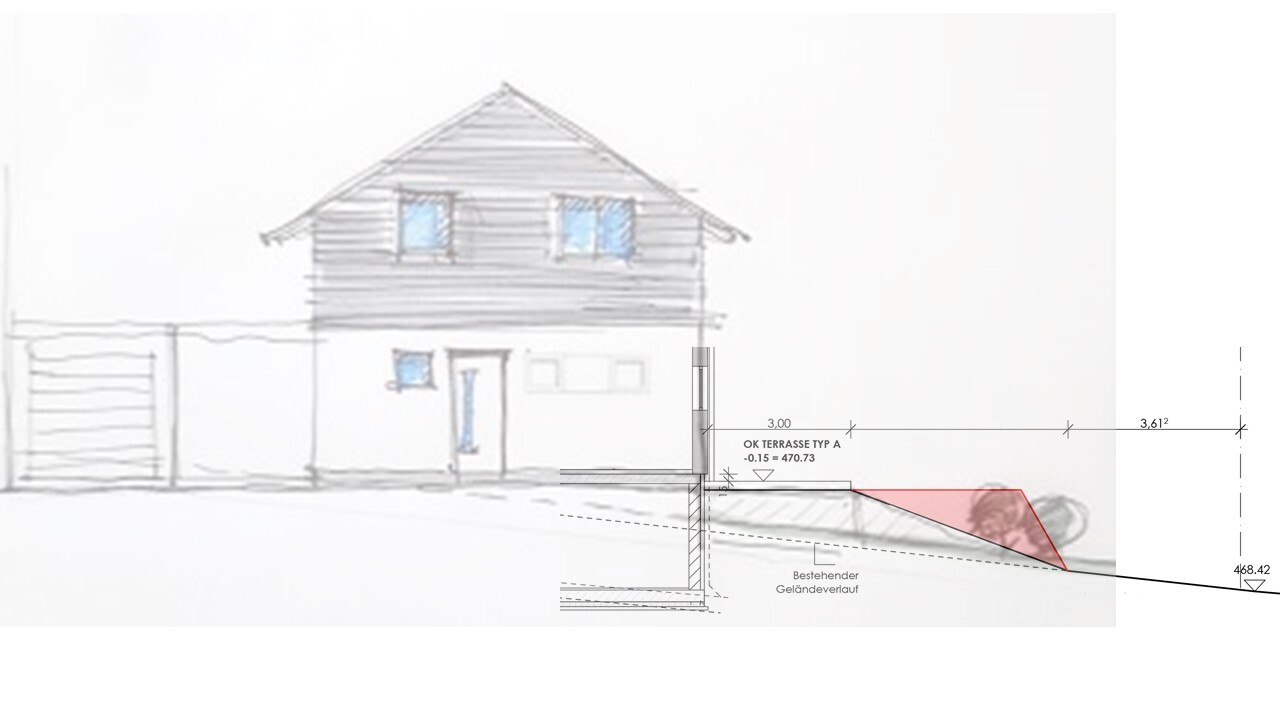 Wenn ich das jetzt zusammenfasse könnte man es so verstehen, dass wir eine gewisse Aufschüttung genehmigt bekommen haben, die auf jeden Fall DIREKT mit unserem Bauvorhaben in Zusammenhang steht. Der direkte Zusammenhang ist mindestens dadurch gegeben, als dass unsere Terrasse diese Aufschüttung benötigt, um eine ebene Fläche zu haben.