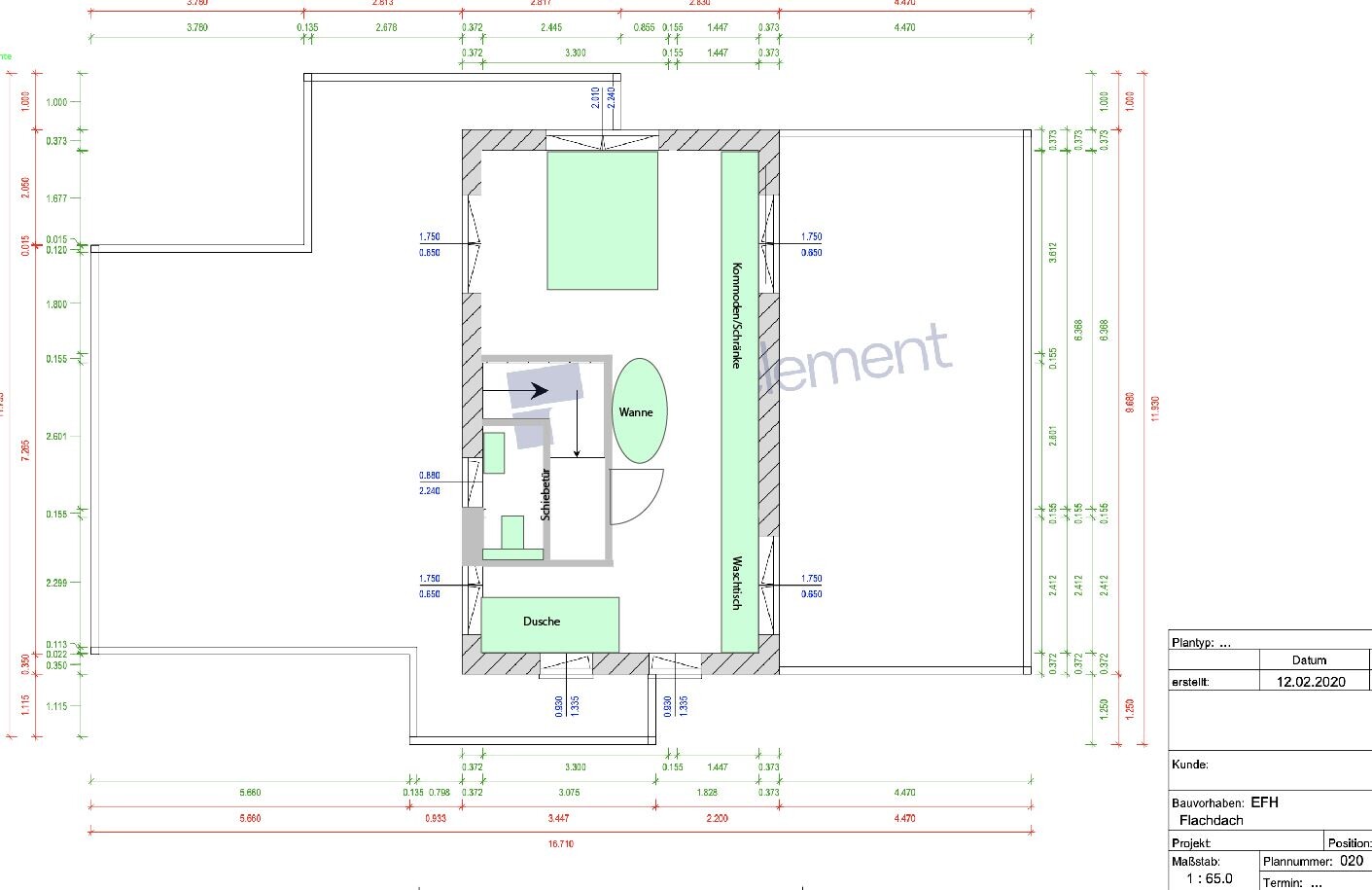 Meine Warnung, so dürfe das eventuell nicht gebaut werden, ist damit gestorben - nicht hingegen mein Hinweis: wenn man Effizienzhaus auch nur ansatzweise ernst meint, rudert ein solch´ ungünstiges Mantel-Volumen-Verhältnis zu stark in die Gegenrichtung. Schon die Flächenaufteilung EG:OG von etwa 4 : 1 würde ich auf schlimmstenfalls 2,5 : 1 abmildern (und das OG auch nicht in den Proportionen eines Seecontainers draufsetzen). Ein Oval Office könnte ja ganz schick sein - auch mit nicht im Schlafzimmer stehender Wanne. Habe ich es eigentlich überlesen, oder gab es noch keine Stellungnahme zu meiner Verwunderung über einerseits "Holzrahmen" aber andererseits Massivbau-"Mauer"öffnungsmaße ?