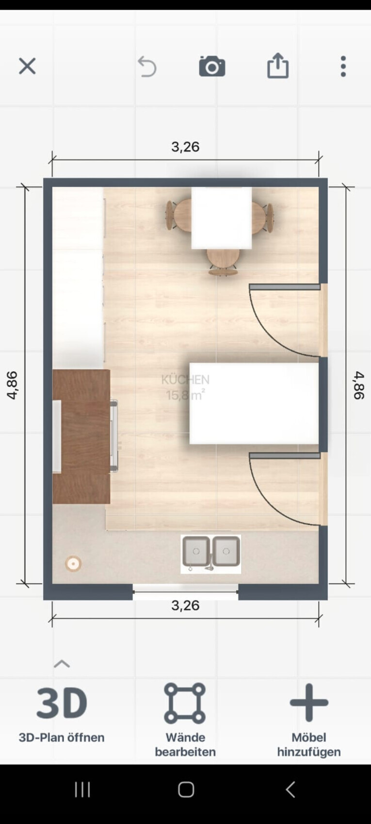 Die Küche sieht jetzt so aus Bzw. wurde so geplant und der Grundriss sieht so aus.
