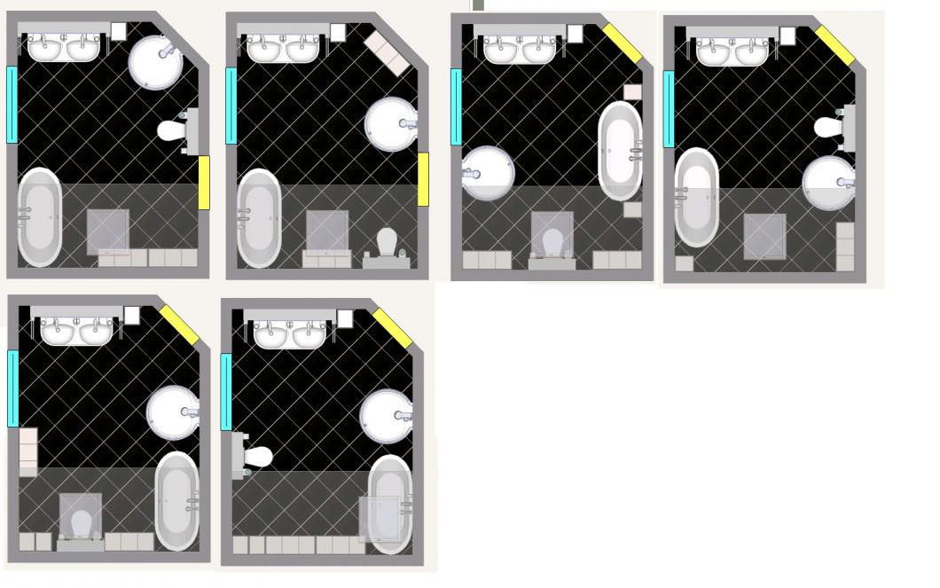 Um das Bad wenigstens etwas aufzulockern war als Alternative noch eine 6eck-Wanne möglich.