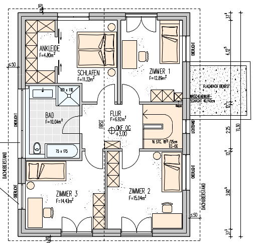 Ich weiß nicht, wie breit Eure Räume werden. Unsere Nachbar hatten auch zwei Zimmer auf einer Seite mit den Maßen von ca. 2,60/2,80. Da stimmten dann die Raumverhältnisse nicht mehr.