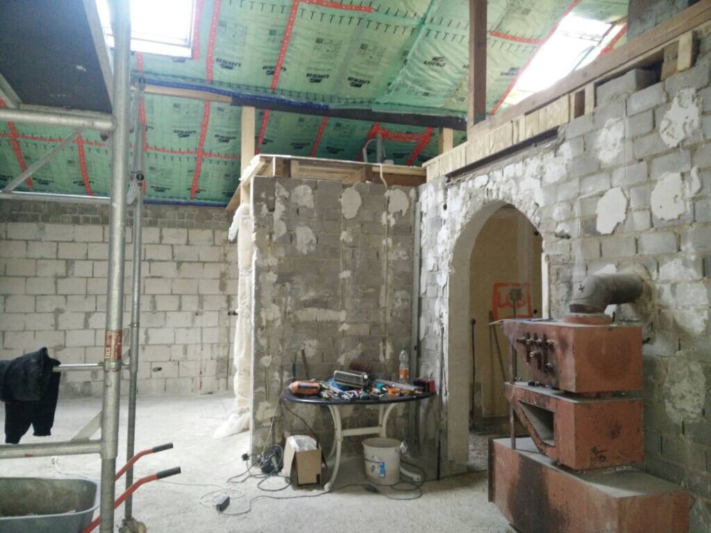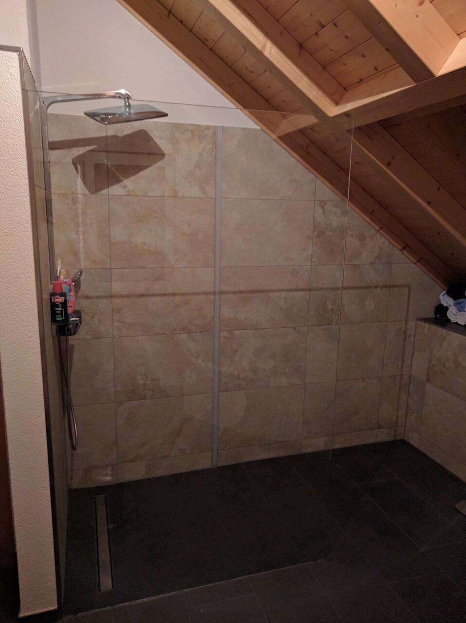 Wir sind froh, dass wir den Spitz offen gelassen haben, auch wenn wir 35° Dachneigung haben und damit einen 3,6m hohen Firstbalken. Das lässt die Räume wirklich größer wirken.