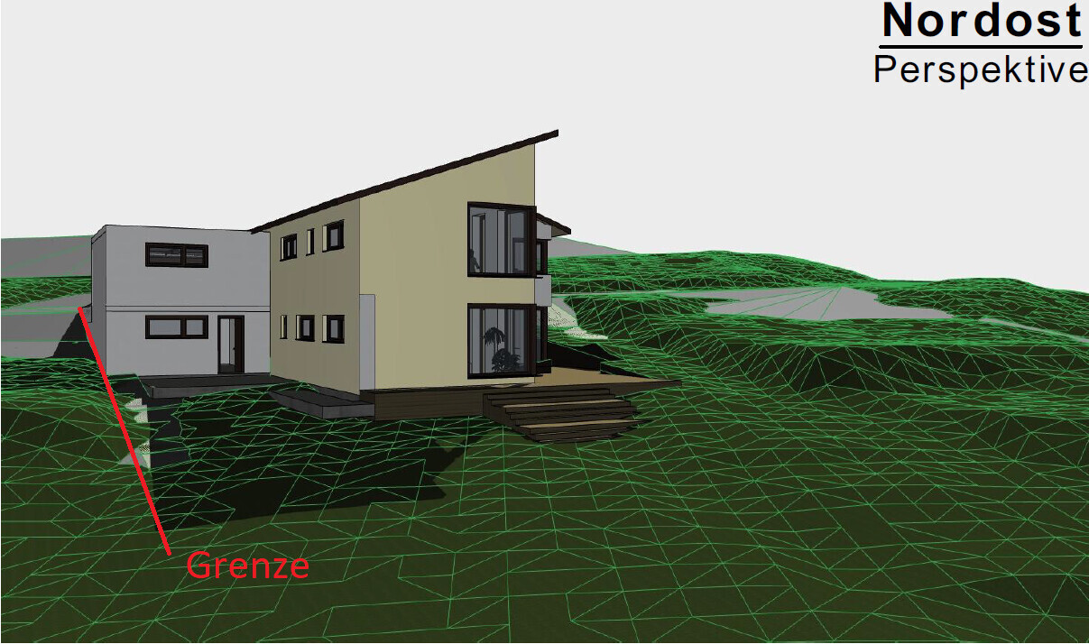 Mit den Nachbarn habe ich gesprochen er hätte kein Problem damit. Ich habe argumentiert, dass ich ein Flachdach baue, damit wir uns nochmals 2,5m sparen. Das fand er gut.