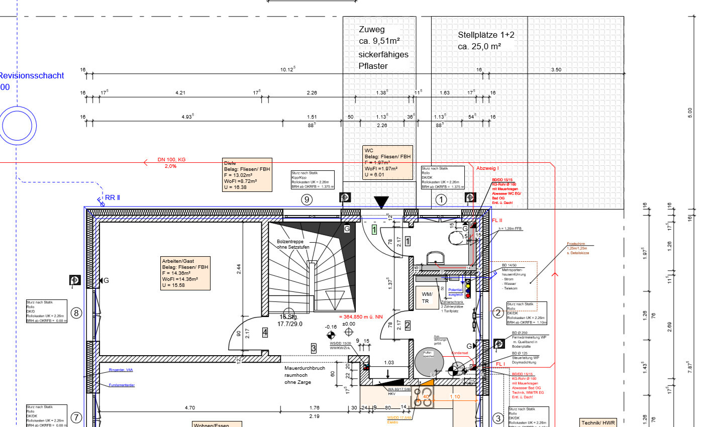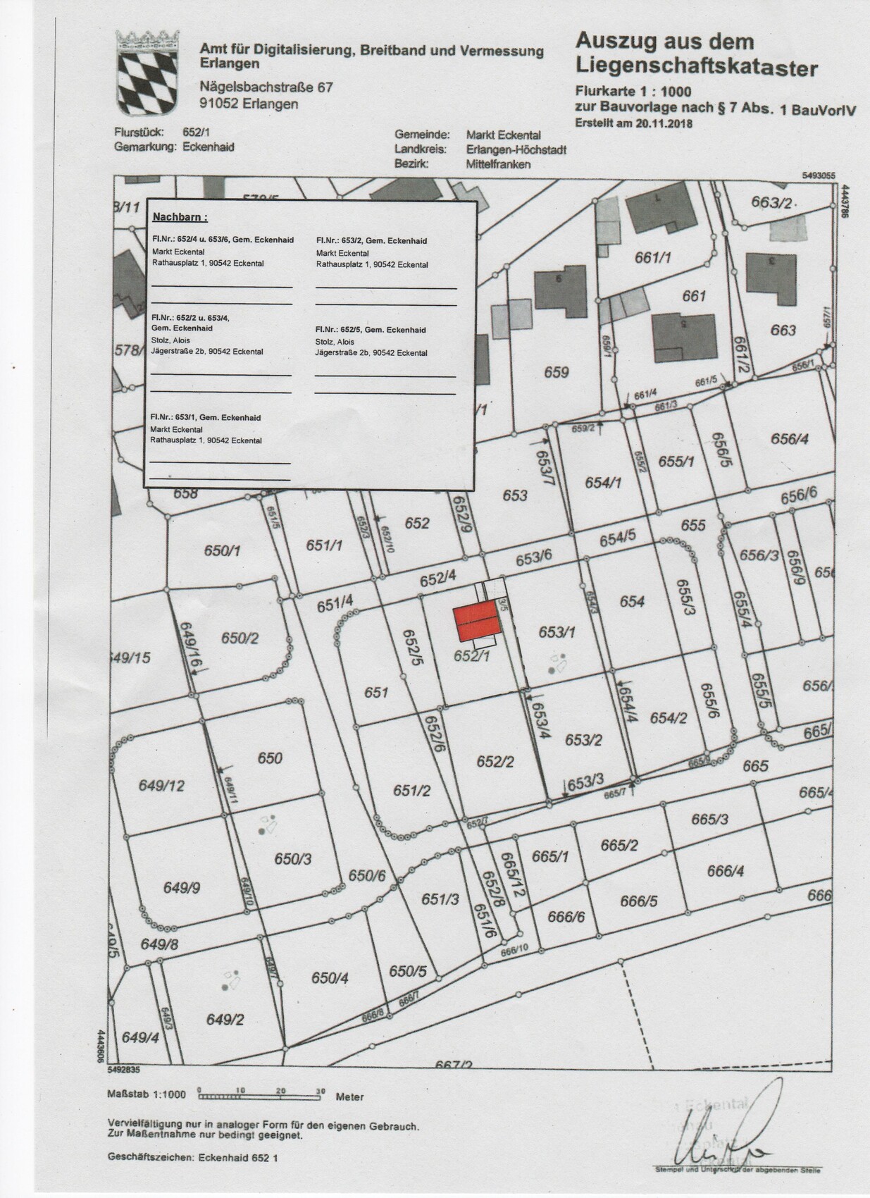 Den Lageplan mit Aufmaß habe ich für irgendeinen Antrag gebraucht und vom GU bekommen. Der Lageplan im Maßstab 1:1000 sowie die Erdgeschossansicht war mit im Bauantrag.