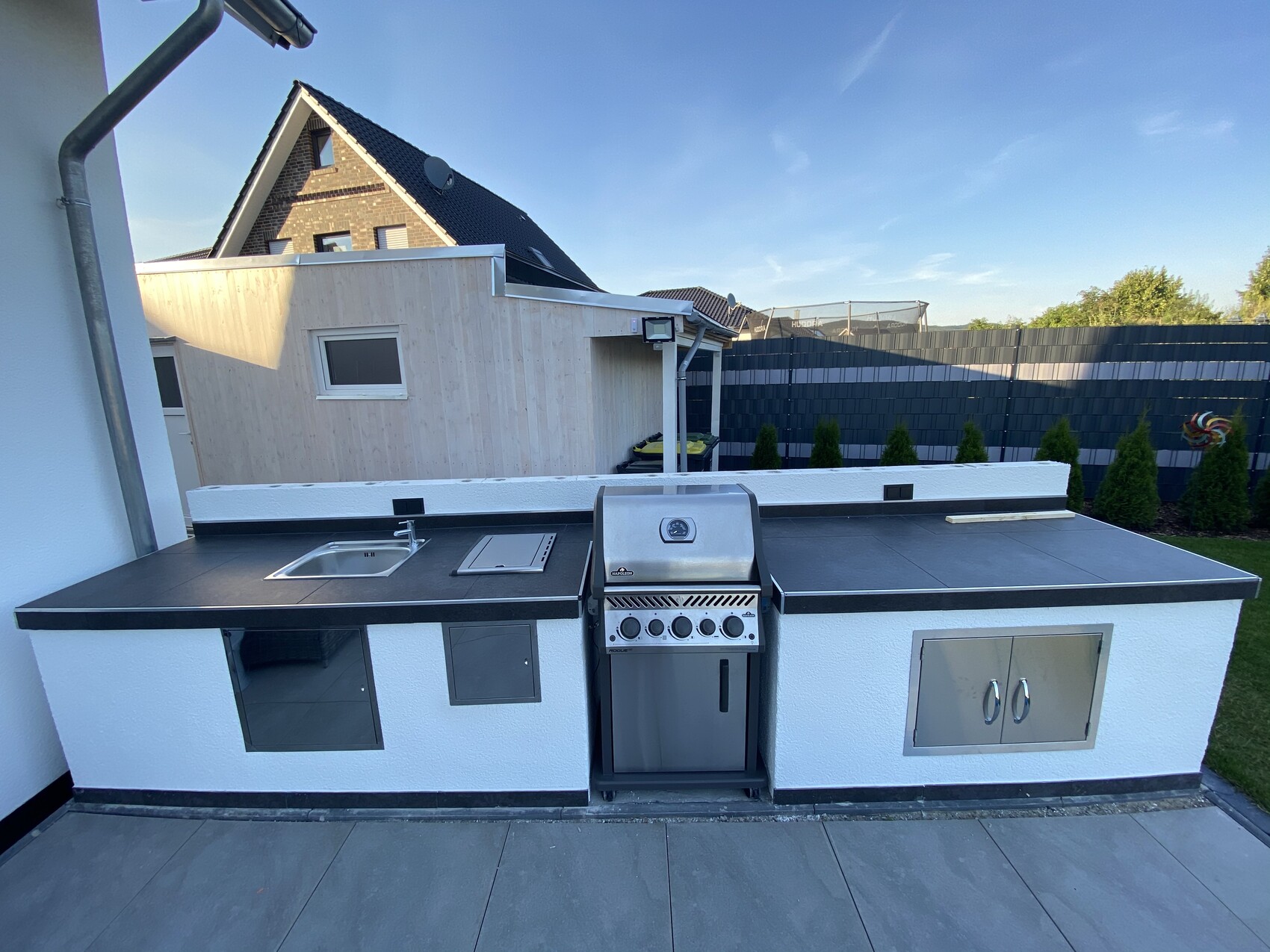 ich tendiere immer zu Gürtel und Hosenträger. Man soll eine kräftige Windboe nicht unterschätzen. jetzt hast du noch die Möglichkeit. Ein paar VA-Anker kosten nicht viel. Genau anzeichnen, 8er Bohrer und die Anker rein.