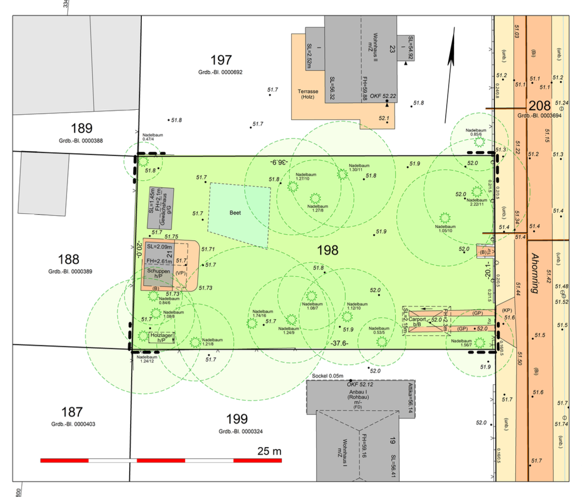 - Nachbarhäuser: Höhe 7,8–9,2 m → geplanter Bau 8,81 m