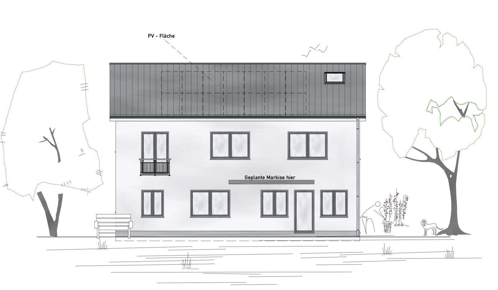 Meine Eltern wohnen auf dem nördlichen Nachbargrundstück; darauf versuchen wir Rücksicht zu nehmen (sie möchten dort wohnen bleiben, sind aber noch fit).
