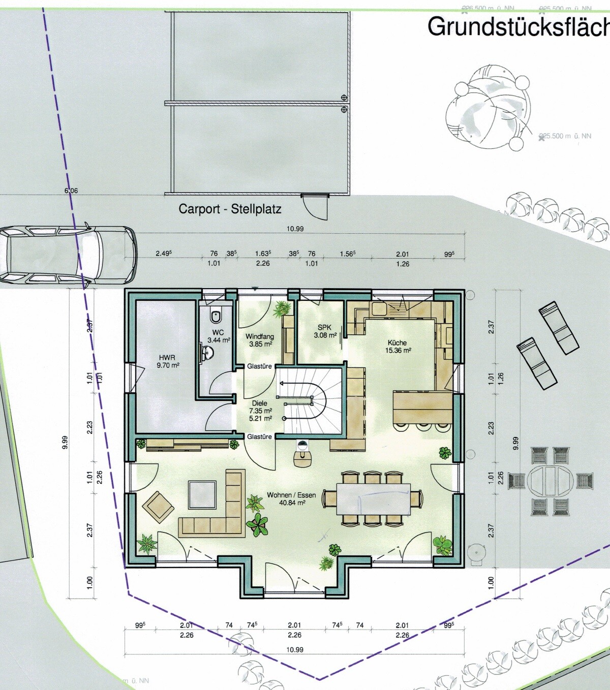 Was noch zu erwähnen ist: Es handelt sich bei dem Grundstück um ein Eckgrundstück. Auch soll kein Keller entstehen, da wir das dadurch gesparte Geld lieber in etwas größeren Wohnraum stecken und in der aktuellen Mietwohnung auch nur einen Keller haben, in dem die Autoreifen liegen, mehr nicht.