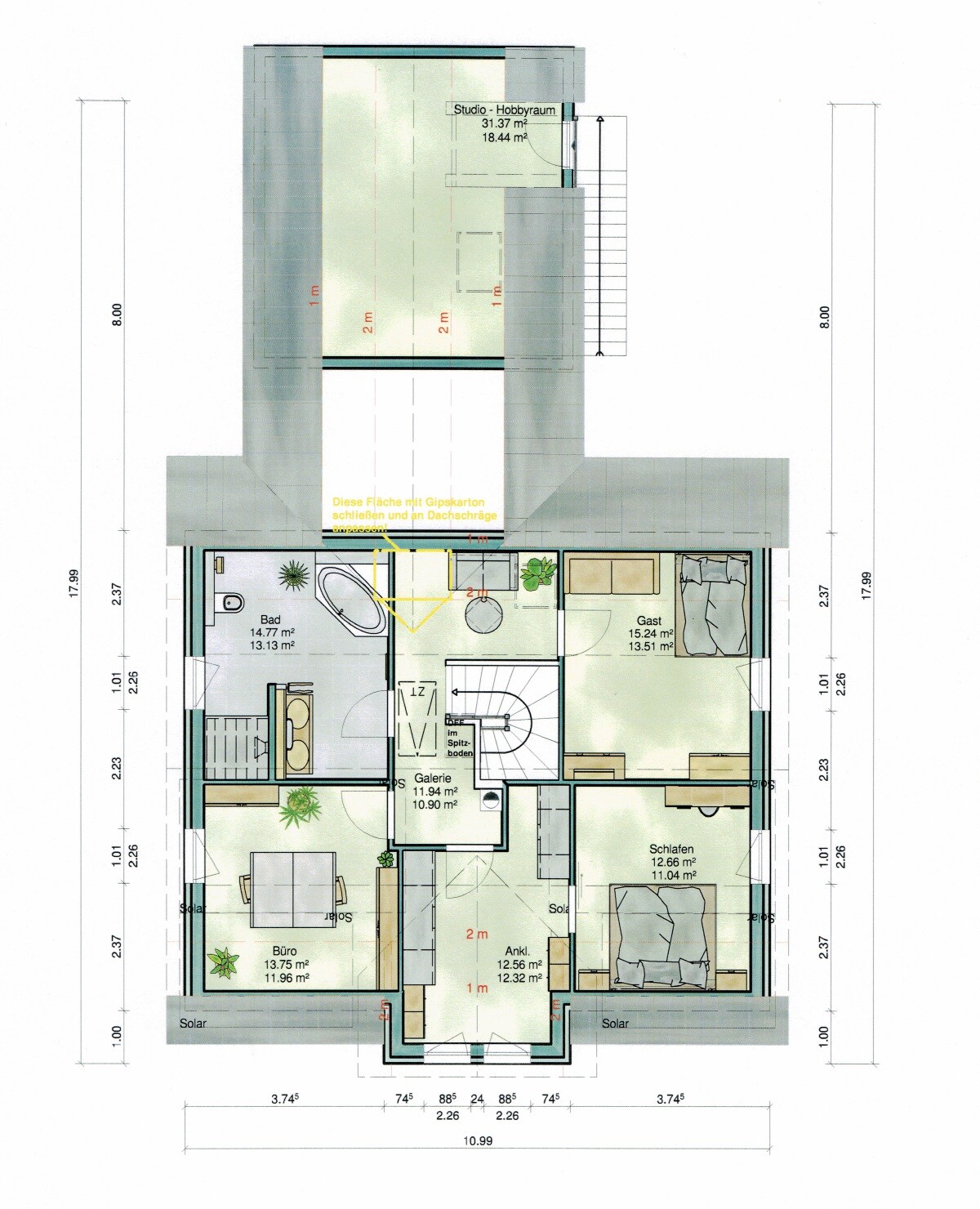 - Ankleide ist ja sogar in der Zeichnung schon merkwürdig möbliert - das passt nicht so ganz (finde die Ankleide im 20 T€ Erker/Giebel eh immer etwas Verschwendung