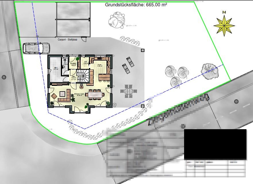 Im Haus selbst soll ein großzügiger Wohn-Ess- und Kochbereich entstehen. Im EG sollen dann noch eine Speisekammer, Gästebad und Hauswirtschaftsraum folgen. Was uns wichtig ist, ist ein Windfang, da der gesamte Ort recht hoch liegt und wir am Ortsrand bauen möchten, wo auch gerne mal der Wind pfeift (dennoch kein Vergleich zum Wind im hohen Norden :p).