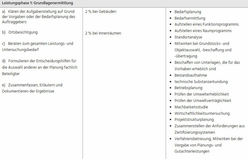 Wir wurden auch gar nicht über die Phasen aufgeklärt oder sonstiges, Rechnung kam und Ende. Auch jetzt wurde mir keine Kostenschätzung übermittelt nach erneuter Nachfrage.Nun ja, wenn Ihr am Ende schon bezahlen sollt, dann bittet den Architekt darum - unter Verweis auf die Leistungsphasen - dass er a) seine Leistungen nicht erbracht und b) eine nicht prüfbare Rechnung erstellt hat, da a)Kurz für Dich - interessant ist die Leistungsphase 2 g) oder die Kostenschätzung in Leistungsphase 2 bzw. deren Fortschreibung in Leistungsphase 3